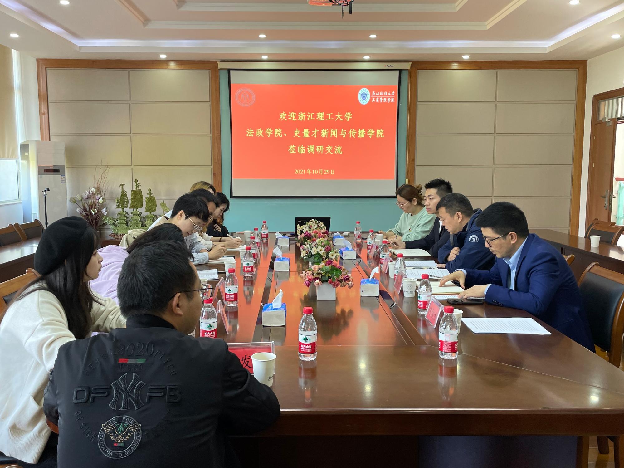 10月29日,浙江理工大学法政学院、史量才新闻与传播学院党委副书记、纪委书记章迪薇一行莅临我院调研交流。学院党委副书记、纪委书记吴玻热情接待了来访客人。