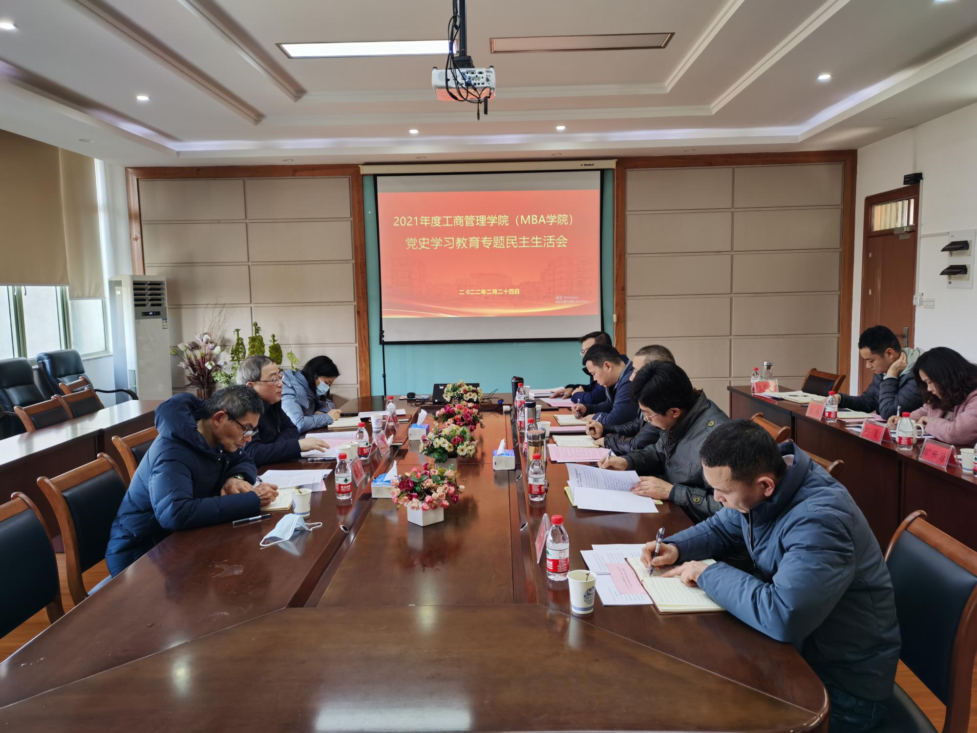 2月24日下午,工商伟德国际1946(MBA学院)召开党委领导班子2021年度党史学习教育暨巡视整改专题民主生活会。伟德国际victor1946校长、党委副书记钟晓敏,学校第二督导组组长沈水法、成员章琳,学院领导班子、全体党委委员、支部书记代表、系主任代表参加会议。会议由院党委书记黄卫华主持。