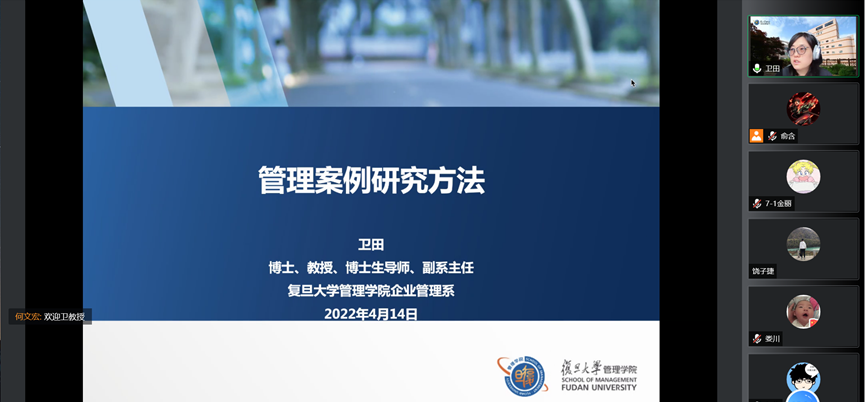 2022年4月14日,复旦大学卫田教授受邀为我院教师作题为《管理案例研究方法》的讲座。本次讲座通过腾讯会议在线举行,吸引了我院以及外校共180余名师生。本次讲座由副院长戴维奇教授主持。