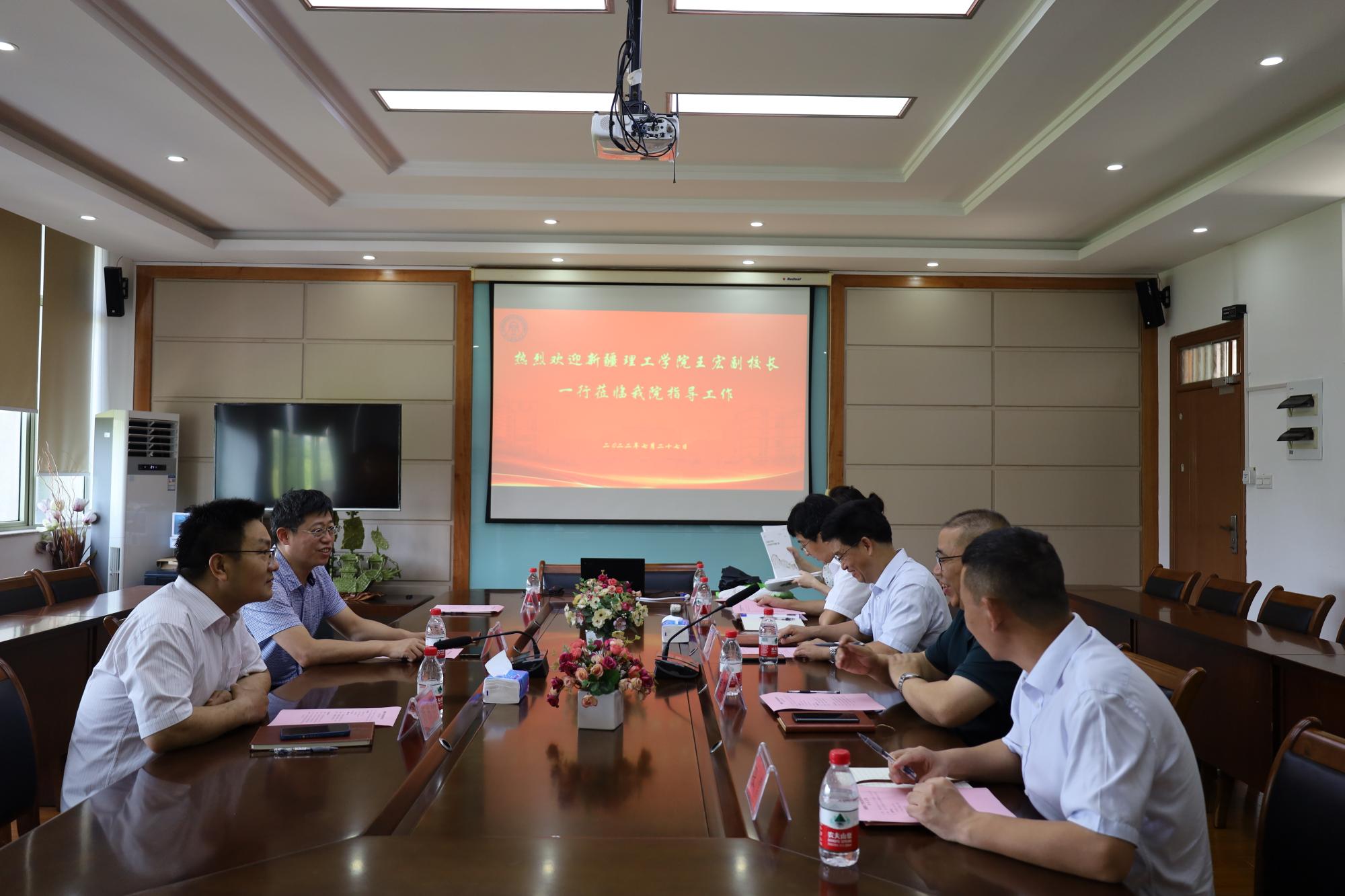 为加强校级合作,贯彻中央援疆有关会议精神,2022年7月27日上午,新疆理工学院党委常委、副校长王宏,教务处处长商月怀到我院调研交流。我校党委委员、副校长董进才会见了来访客人,学院党委书记黄卫华、院长王建明、教学副院长张雷等人参加了交流座谈会。