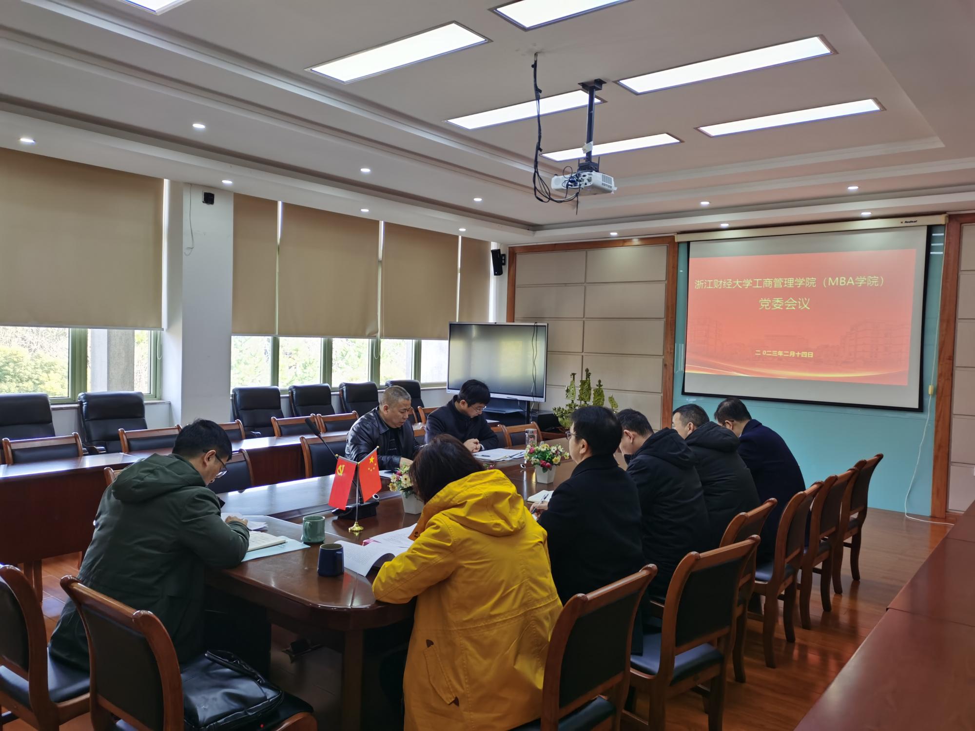 2月14日,工商伟德国际1946党委召开新学期党委会议,传达李金昌、钟晓敏在2023年年初学校中层及以上干部会议上的讲话精神,研究部署新学期党建工作和博士点申报工作。学院全体党委委员参加会议。学院党委书记黄卫华主持会议。