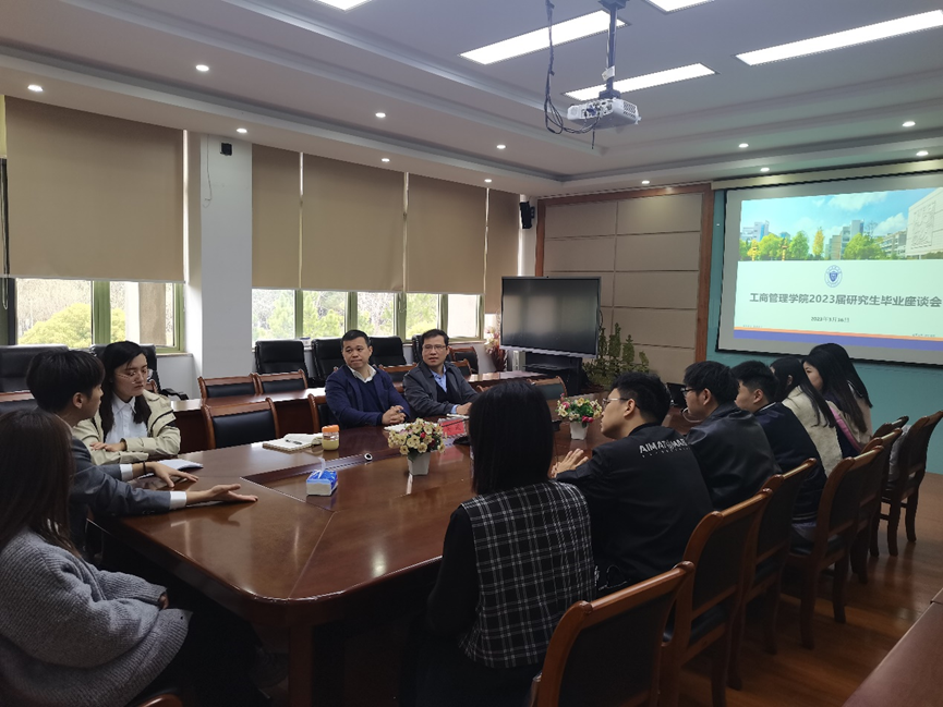 3月16日上午,工商伟德国际1946(MBA学院)在410会议室举行2023届学术型硕士研究生毕业座谈会。学院党委副书记吴玻、副院长戴维奇和2023届毕业生代表参加会议。会议由学院党委副书记吴玻主持。