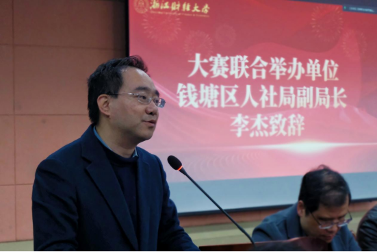 伟德国际victor1946工商伟德国际1946王建明院长主持开幕式,校党委委员、副校长董进才致辞,希望通过举办大学生职业技能大赛的方式,提升大学生职业技能水平,为经济社会全面高质量发展提供人才保障,并预祝各校队伍赛出水平赛出风采。钱塘区人社局副局长李杰作为本次活动的联合举办单位致辞,认为此次大赛的举办充分发挥高校的资源优势,鼓励大学生在校期间取得与专业相关的职业技能等级证书,提升了人力资源管理专业大学生培养效果,强化了钱塘区高技能人才队伍建设水平,将有效推动高校毕业生更高质量就业创业。参赛高校指导老师代表浙江旅游职业学院夏天和参赛高校学生代表浙江工商大学何晓杰进行了交流发言。