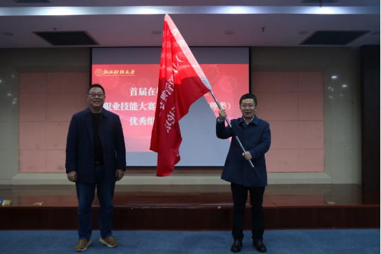 最后,由校教务处副处长叶舟代表大赛组委会,将论坛(大赛)会旗转交给下一届承办高校浙江理工大学经济伟德国际1946薛宪方教授。至此,首届在杭高校大学生职业技能大赛(人力资源管理类)总决赛圆满结束。