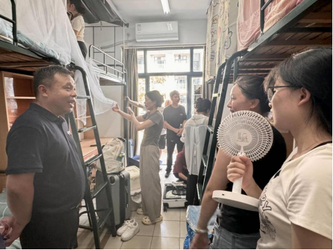 学院党委书记朱力明和学院班子成员一起走访了迎新现场,深入宿舍走访慰问新生,详细了解新生的住宿情况与适应状况,收集同学们对寝室环境的反馈意见,致力于打造一个温馨、舒适的学习生活环境。领导的关怀与问候,如同和煦的阳光,温暖了每一位新生的心房。