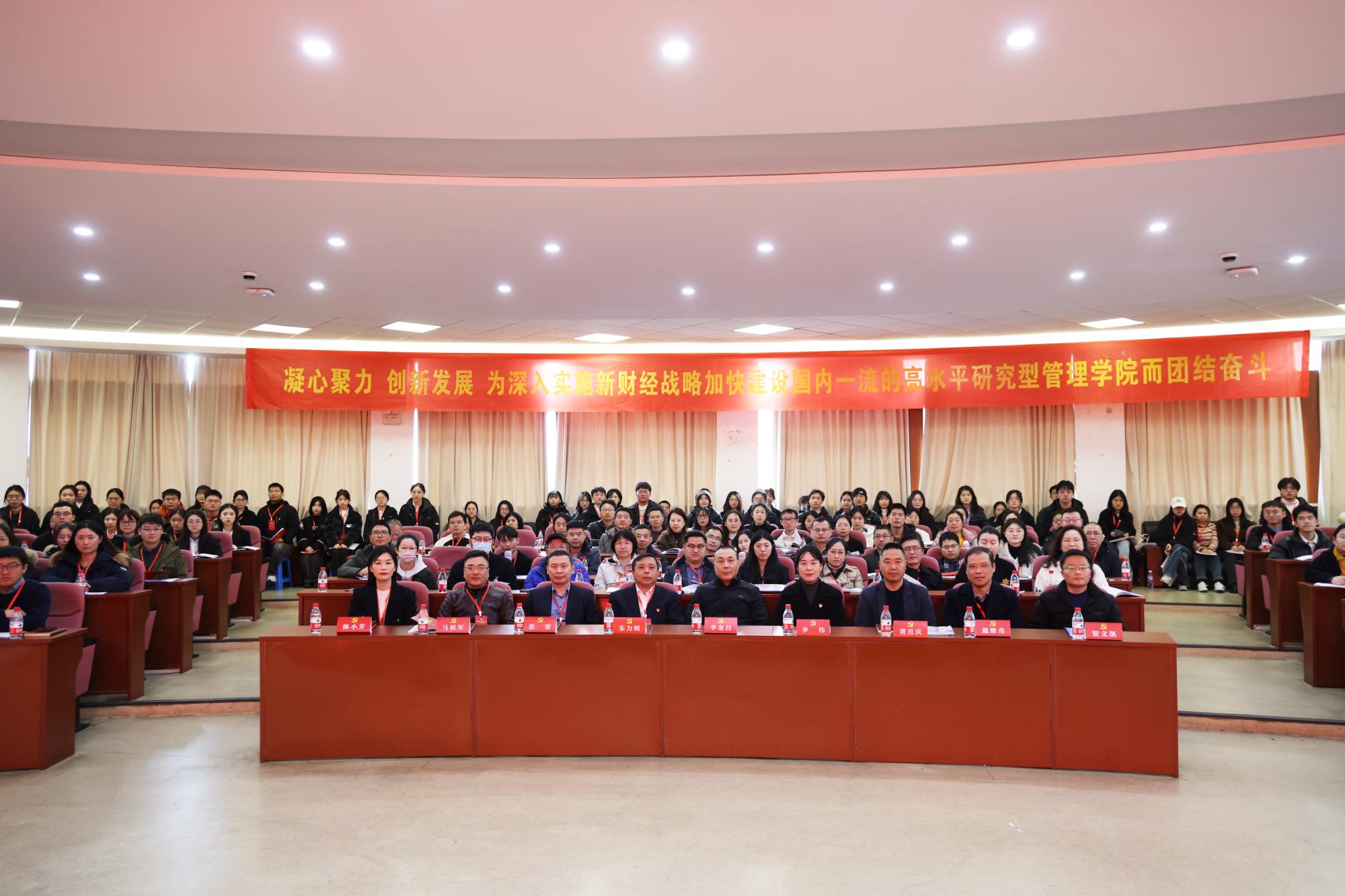 伟德国际1946党委书记朱力明致开幕词,他代表全院党员师生向莅临大会的学校领导表示热烈的欢迎和衷心的感谢,并预祝党员大会取得圆满成功。同时,朱力明代表学院党委作题为《凝心聚力 创新发展 为深入实施新财经战略加快建设国内一流的高水平研究型伟德国际1946而团结奋斗》的工作报告。报告全面回顾了过去五年来,学院党委拼搏进取,奋发有为,团结带领广大党员和全体师生,在党建、党风廉政建设、治理体系、学科建设、人才培养、师资队伍建设等方面取得的突出成绩。同时,提出面对新问题新挑战迎难而上,明确了下一阶段学院党委的发展目标:将紧密团结在党中央周围,坚定不移以党的二十大和二十届三中全会精神为指引,强化党建引领,深化党的创新理论武装,提升基层党组织品牌建设质效,树牢“大人才观”建强“三支队伍”,推动全面从严治党向纵深发展,开创统战群团工作新格局,坚定执着,为深入实施“新财经战略”全面建成国内一流的高水平研究型伟德国际1946的目标奋勇前进!