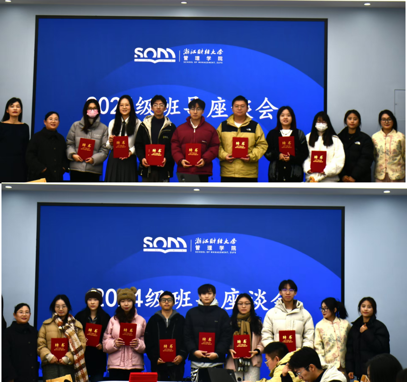 陈小芳副书记和24级新生辅导员们为新生班导们颁发了聘书以及暖冬小礼品。