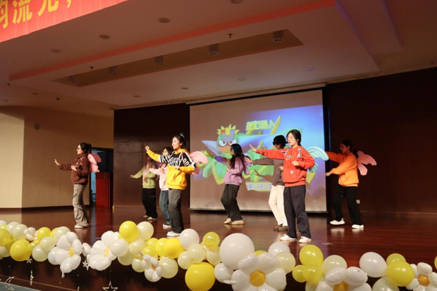 24工商3班的同学为大家带来了《开心超人》舞蹈表演,幽默风趣的风格,吸引着每一个人的眼球,耳熟能详的旋律让大家情不自禁的跟着旋律一起摇摆。