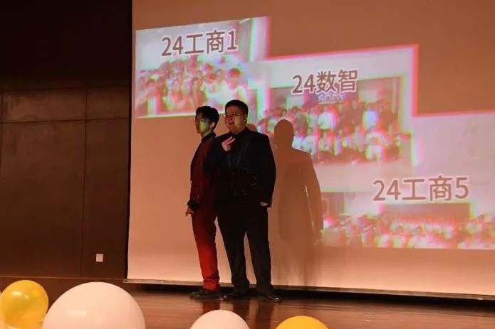 24级新生班全体班导盛装出席,上台走秀,并接受24级班级代表送出的鲜花,感谢他们对每个学弟学妹们的无私付出。