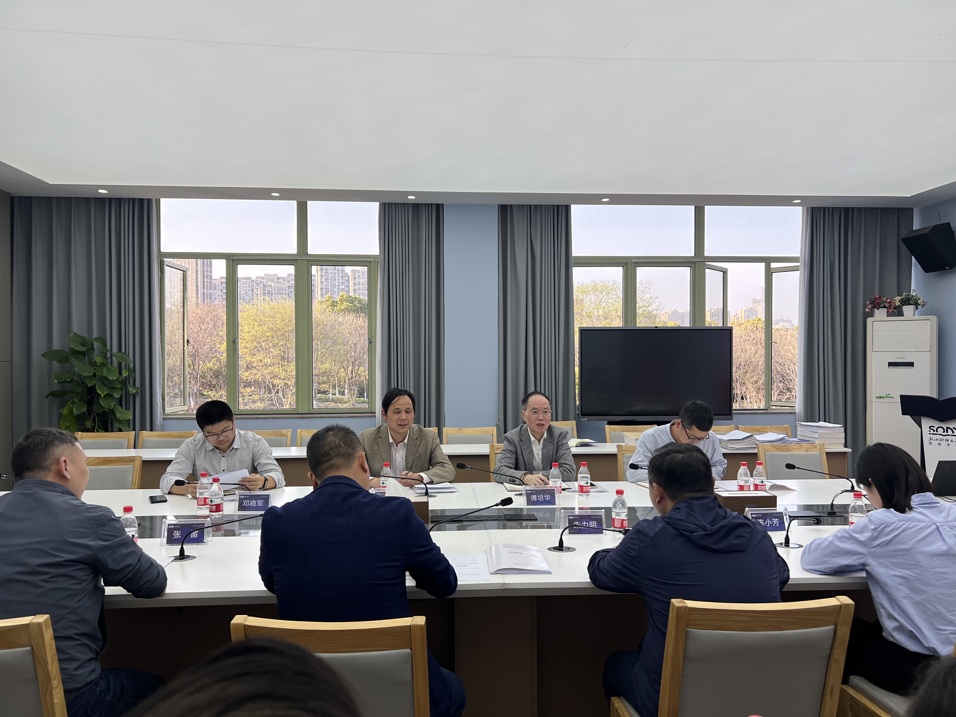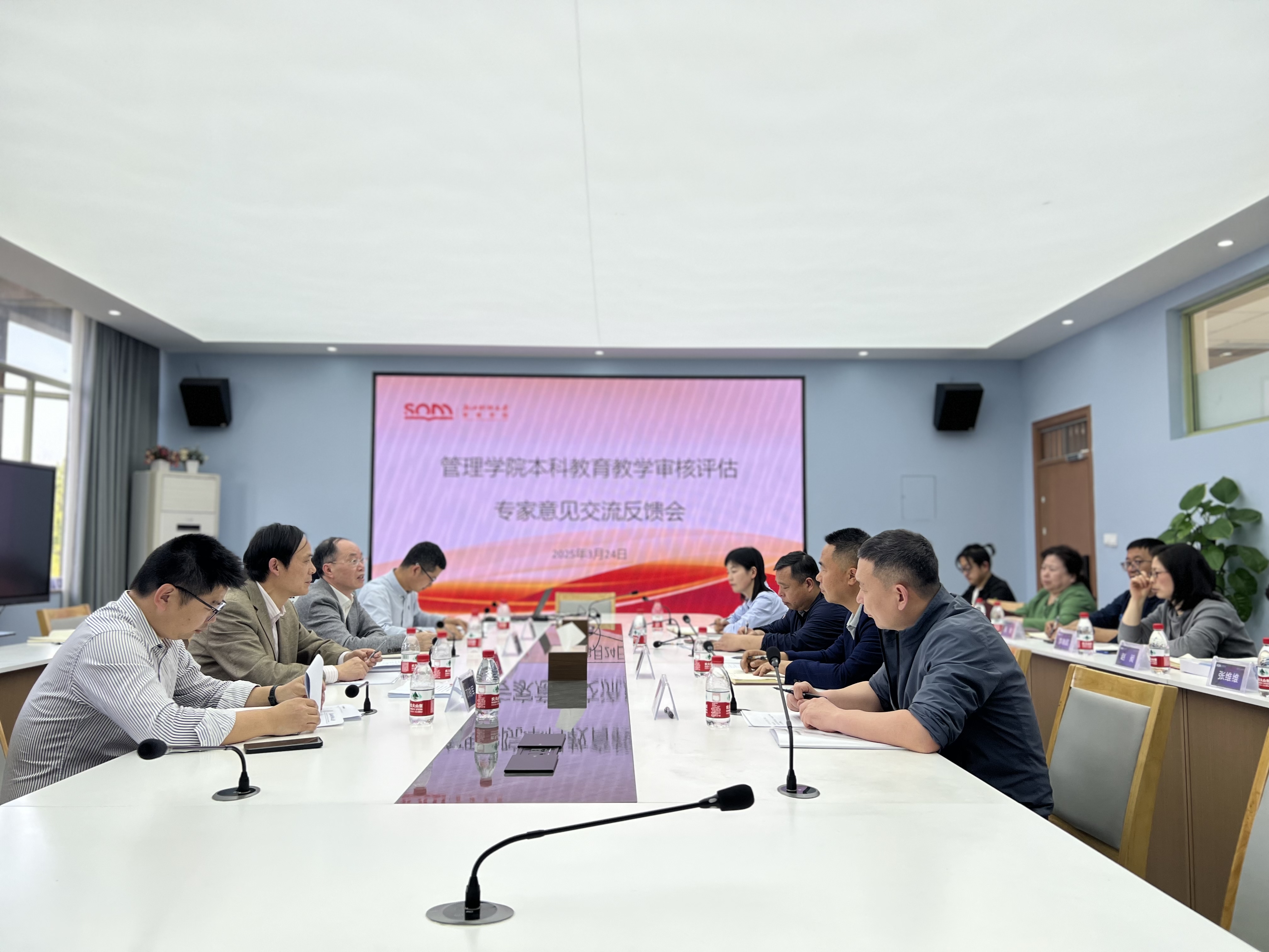 2024年3月24日下午,伟德国际1946召开迎接教育部本科教育教学审核评估校内预评估线下考察会。评估专家组组长、浙江传媒学院教务处处长姚望,浙江工商大学管理工程与电子商务学院副院长傅培华,校经济学院副院长邓晓军、学工部副部长金国权、外国语学院副书记张莲,我院党委书记朱力明、执行院长董直庆、副院长张雷、副书记陈小芳出席,学院各基层教学组织负责人、教师代表、教学秘书等参加。