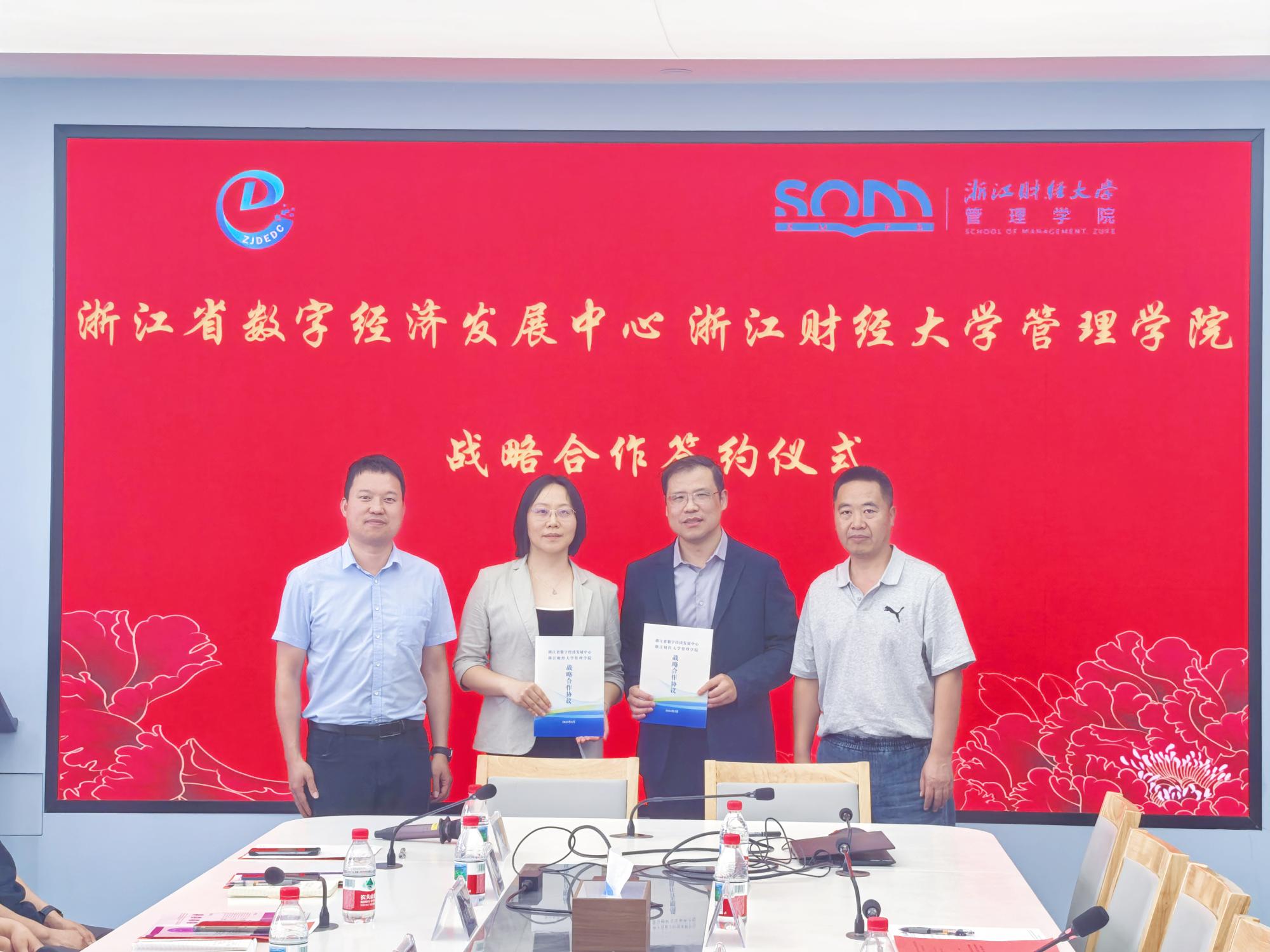 5月14日,伟德国际1946与浙江省数字经济发展中心举行战略合作协议签约仪式。省数字经济发展中心主任徐招玺,副主任张尚清、胡胜蓉,伟德国际1946执行院长董直庆、副院长戴维奇等出席签约仪式。会议由戴维奇主持。