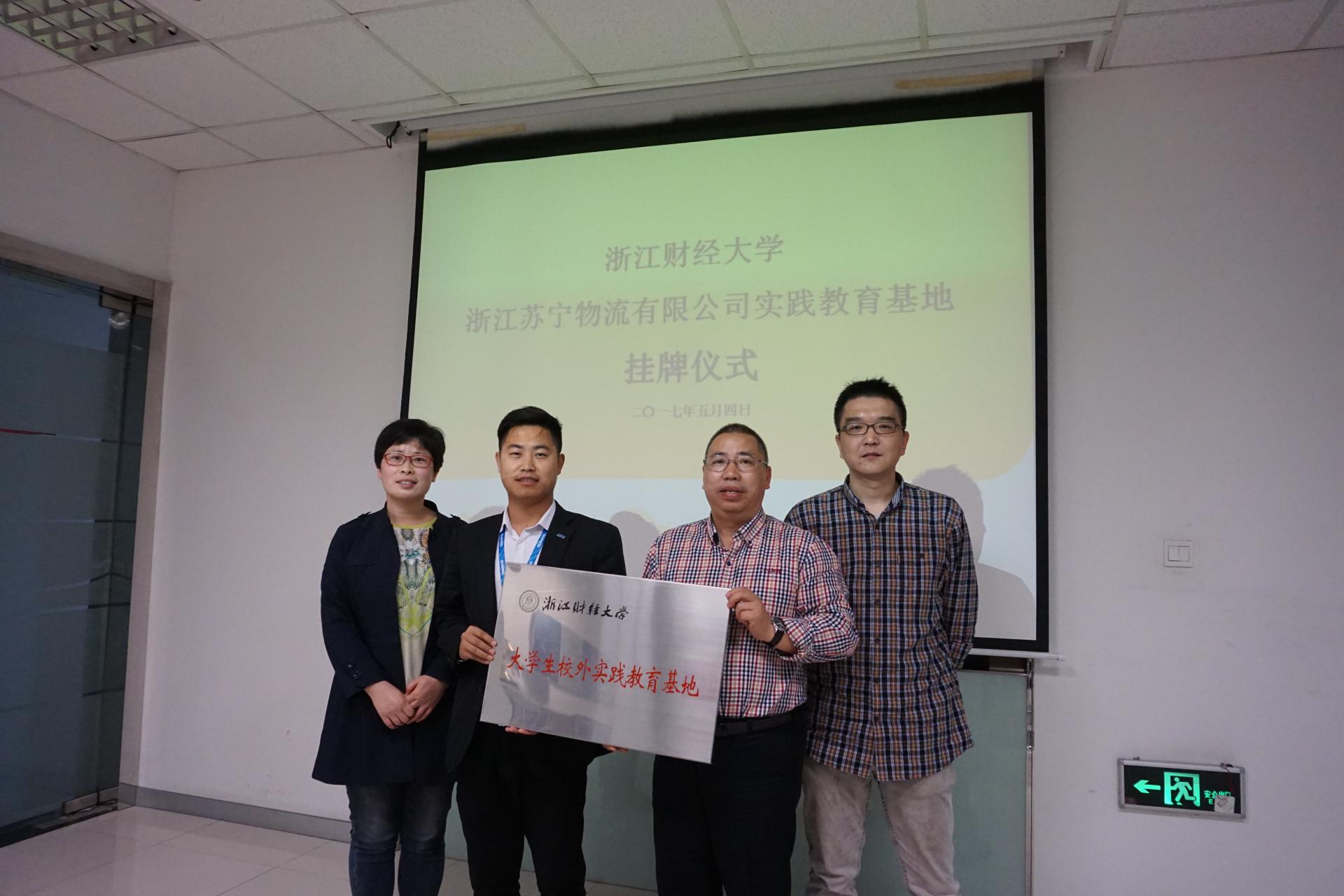 5月4日上午,我院与浙江省苏宁物流有限公司举行共建校级实践教育基地挂牌,学院党委书记黄卫华、物流管理系主任田家欣、李晓超老师与浙江省苏宁物流有限公司总经理唐成红等企业代表出席了本次挂牌仪式。