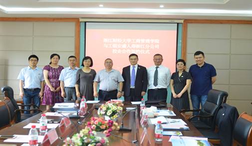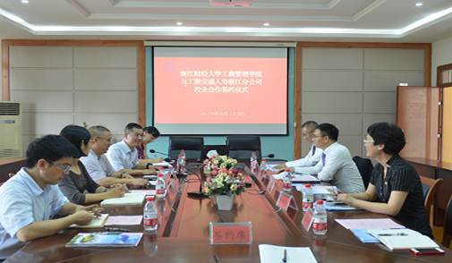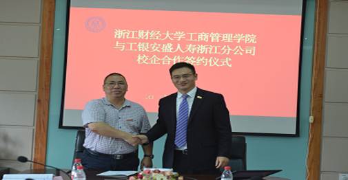 6月27日下午,我院与工银安盛人寿保险浙江分公司校企合作协议签约仪式在学院楼410会议室举行。学院党委书记黄卫华、党委副书记谢敏、副院长倪文斌、办公室主任邱夏、学办主任胡星平等,工银安盛人寿保险浙江分公司总经理张玉峰、总公司代表朱晨、人力资源部经理彭文、综合管理部经理胡培红、人力资源部夏燕梅等出席双方签约仪式,还有杭州日报社、中新社浙江分社等媒体记者应邀参加了双方签约仪式。