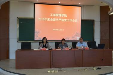 5月8日下午,工商伟德国际1946于学院楼217会议室召开2018年度全面从严治党工作会议。校纪委委员张美华、工商伟德国际1946全体教职员工参加了本次会议。会议由学院党委副书记、纪委书记谢敏主持。