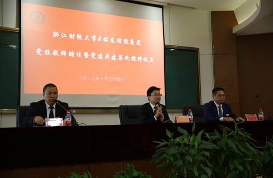 党的十九大描绘了新时代中国建设的新蓝图,对于进一步加强基层党组织建设提出了新要求。为深入学习贯彻落实十九大会议精神,拓展校企合作新领域,为党建发展寻求新活力,10月24日下午,工商伟德国际1946举行了一场别开生面的主题党日活动,活动邀请到了浙江铭龙控股集团党委领导班子与全体支部书记一行共同参与,校党委副书记卢新波、组织部门负责人莅临现场指导工作。活动由工商伟德国际1946党委书记黄卫华主持。