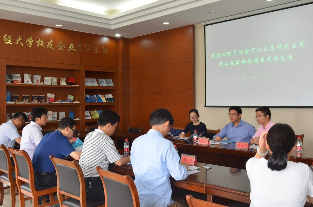 2018年6月1日,宁波诺丁汉大学研究生院院长张毓隆教授一行人来我院访问交流。工商伟德国际1946院长董进才教授、副院长王建明教授,人事处处长鲍海君教授,研究生院副院长陈星平老师,信息管理与工程学院副院长张帅,以及工商伟德国际1946科研秘书、研究生秘书等参加了交流会。