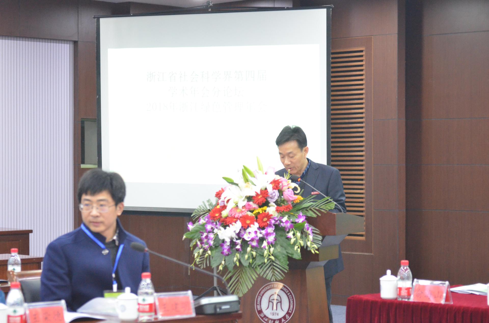 浙江省社会科学界联合会社科团体处王三炼处长代表浙江省社科联对本次会议的胜利召开表示祝贺,王三炼处长指出,2018年是贯彻党的十九大精神的开局之年,是改革开放40周年,是决胜全面建成小康社会、实现“十三五”规划承上启下的关键一年。在这样的新时代背景下,举行浙江绿色管理年会具有非常重要的意义。而本次年会的胜利召开必将有力地促进我省乃至我国绿色管理理论的进一步创新,也必将有力地推动我省乃至中国绿色管理实践的进一步进展。绿色消费、绿色创新、绿色人力资源、绿色治理等一系列绿色管理问题的研讨,在中国特色社会主义新时代下意义深远,责任重大。