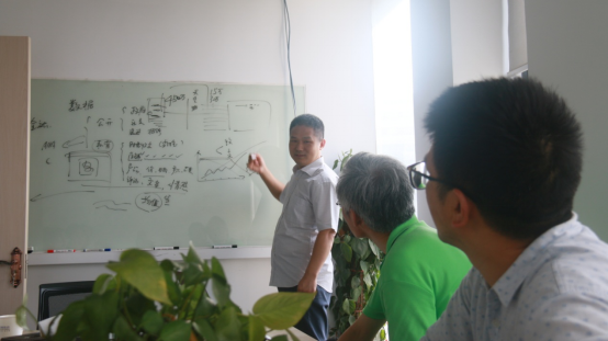 电梯门一打开,“通得科技”四个大字便映入眼帘,简约而不失大气,含蓄而不失张扬,随后通得科技张总及施工程师热情的接待了实践服务团的成员。