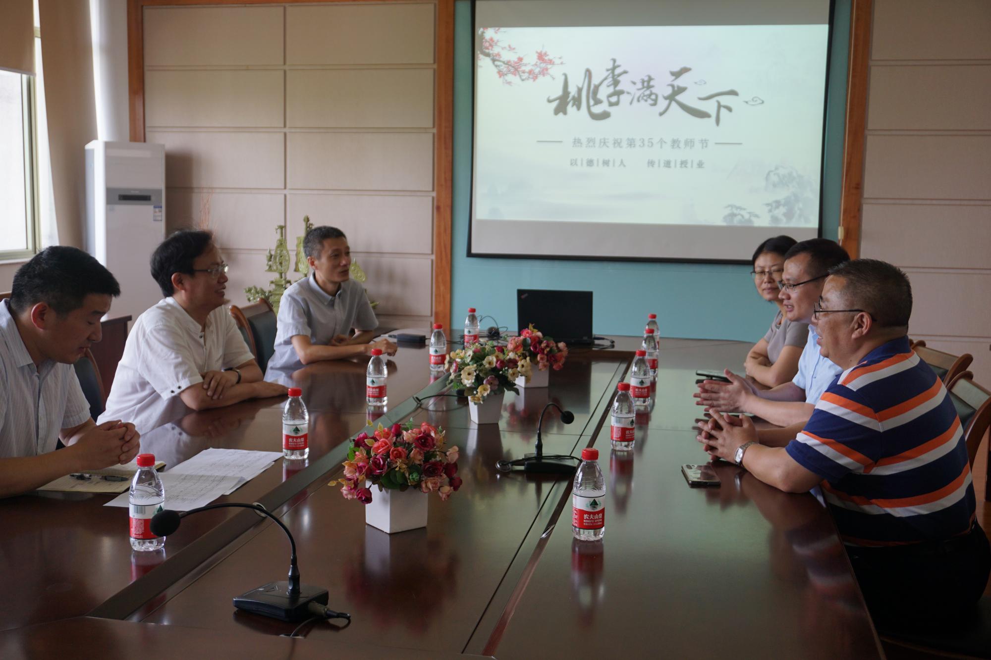 在第三十五个教师节即将到来之际,9月10日,学校党委副书记黄建新一行来我院走访优秀教师代表孔小磊老师,向他表示节日慰问,并通过他向全院教师致以节日的问候和美好祝福。