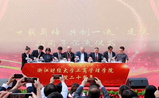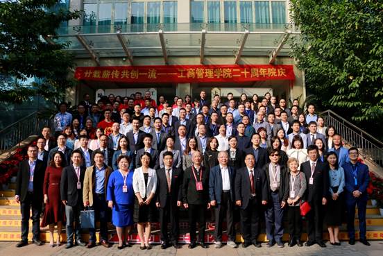11月2日,金桂飘香时,我院隆重举行建院二十周年庆典暨校友创新创业论坛活动,来自五湖四海的工商学子齐聚一堂,喜迎母校45岁华诞,共襄工商20岁盛典。学院首任院长、原学校副校长李雷生、学院第二任院长楼远、学院第三任院长陈惠雄、学院现任院长董进才、院党委书记黄卫华、创业学院院长、原学院党总支书记尤利群、院党委副书记谢敏、副院长王建明、中美合作项目美方托莱多大学负责人安东尼,以及学院的历届校友和在校师生代表们出席本次活动。