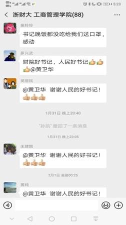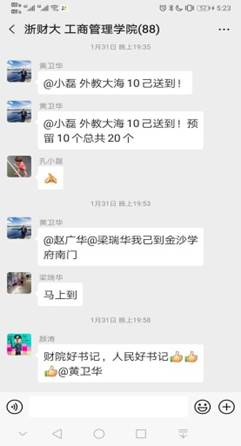 “书记,如果口罩够,我想要几个。我在清雅苑。”“书记,我需要口罩。我在城西,能否快递?”一条条来自学院群里各位老师迫切需求的信息,让黄卫华这名老党员拿起车钥匙,扛起装满口罩的箱子就走出了家门。从下沙到市区,从金沙学府-清雅苑-文汇苑-采荷人家-高教新村……一路向西;自驾车80多公里把口罩一一送到各位老师手上。顾不上寒暄、顾不上休息,从下午五点一直到晚上八点半,送口罩的黄书记一直在路上。