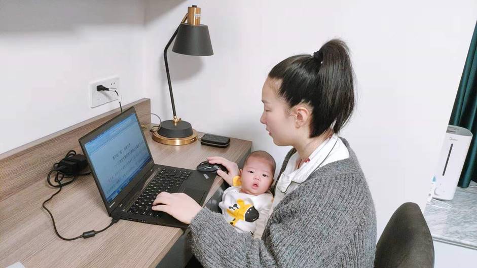 疫情严重,家里老人都无法前来照料,周老师只能自己带宝宝。在拍摄微视频的几天里,需要跟支部委员反复确定视频细节,有的时候宝宝在哭,就抱着宝宝边哄边沟通。周老师在疫情来临之时,把“三会一课”搬到线上,周老师希望通过网络圈层发挥党员的示范引领作用,并通过拍摄微视频这样的形式为战‘疫’助力,为广大学子领航。
