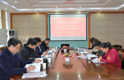 12月30日下午,中国共产党伟德国际victor1946第二次代表大会工商伟德国际1946代表团讨论审议学校“两委”工作报告会议在5号楼410会议室召开。校党委委员、党委组织部部长、统战部部长董进才,工商伟德国际1946党委书记黄卫华、院长王建明、学院党委副书记林骁邦、副院长戴维奇、院办主任邱夏、学办主任胡星平、教工第二党支部书记谢凤华、研究生张晓杭等8名正式代表,1名列席代表参加本次会议,会议由代表团团长黄卫华主持。