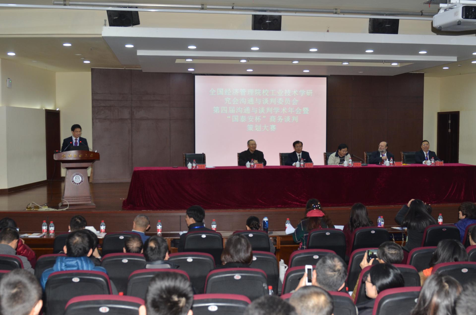 2016年11月26-27日,由全国经济管理院校工业技术学研究会沟通与谈判委员会主办,伟德国际victor1946工商伟德国际1946承办的第四届沟通与谈判学术年会暨“国泰安”杯商务谈判策划大赛在我校成功举行。本次年会得到全国各省市高校、杂志社、出版社以及企业代表的热烈响应,来自中科院、中山大学、山东大学、中南大学、北京交通大学、首都经济贸易大学、浙江工商大学、云南财经大学、伟德国际victor1946、匈牙利圣伊斯特万大学、《南开管理评论》、《管理学报》、《财经论丛》以及高等教育出版社、中国人民大学出版社、清华大学出版社、机械工业出版社、电子工业出版社、人民邮电出版社、深圳国泰安教育信息技术有限公司、科勒中国投资有限公司、杭州淘材库科技有限公司等单位的参会代表近300人,创历史新高。