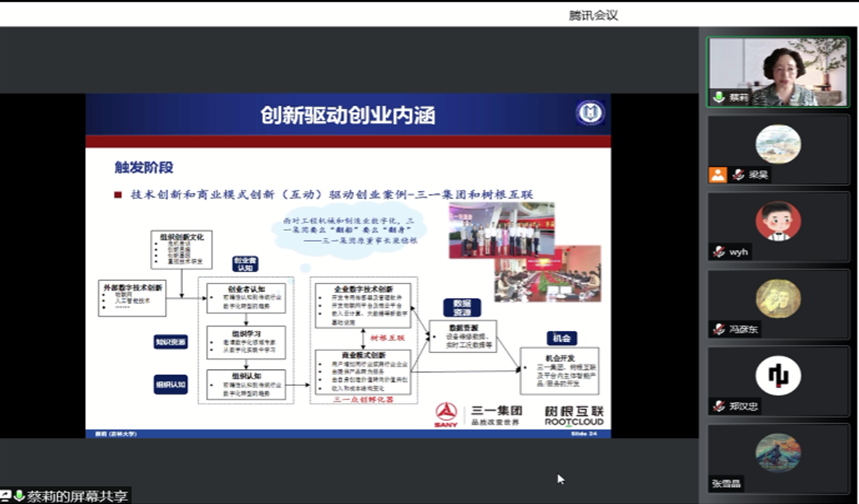 在互动环节,蔡莉教授与各位参会师生就“如何解剖数字化情景”、“创业驱动创新的可能性”、“平台型企业与机会集的内在关系”等问题进行了深入的交流。 本次讲座蔡莉教授向我们展示了她目前正在主持的国家自科重大项目研究进展,强调了创新驱动创业带来高质量产出的种种机制,并且多次运用案例展开形象生动的讲解。与会师生纷纷表示受益匪浅。戴维奇副院长最后对讲座进行了总结,并向蔡莉教授致以谢意。讲座在愉快的氛围中降下帷幕。
