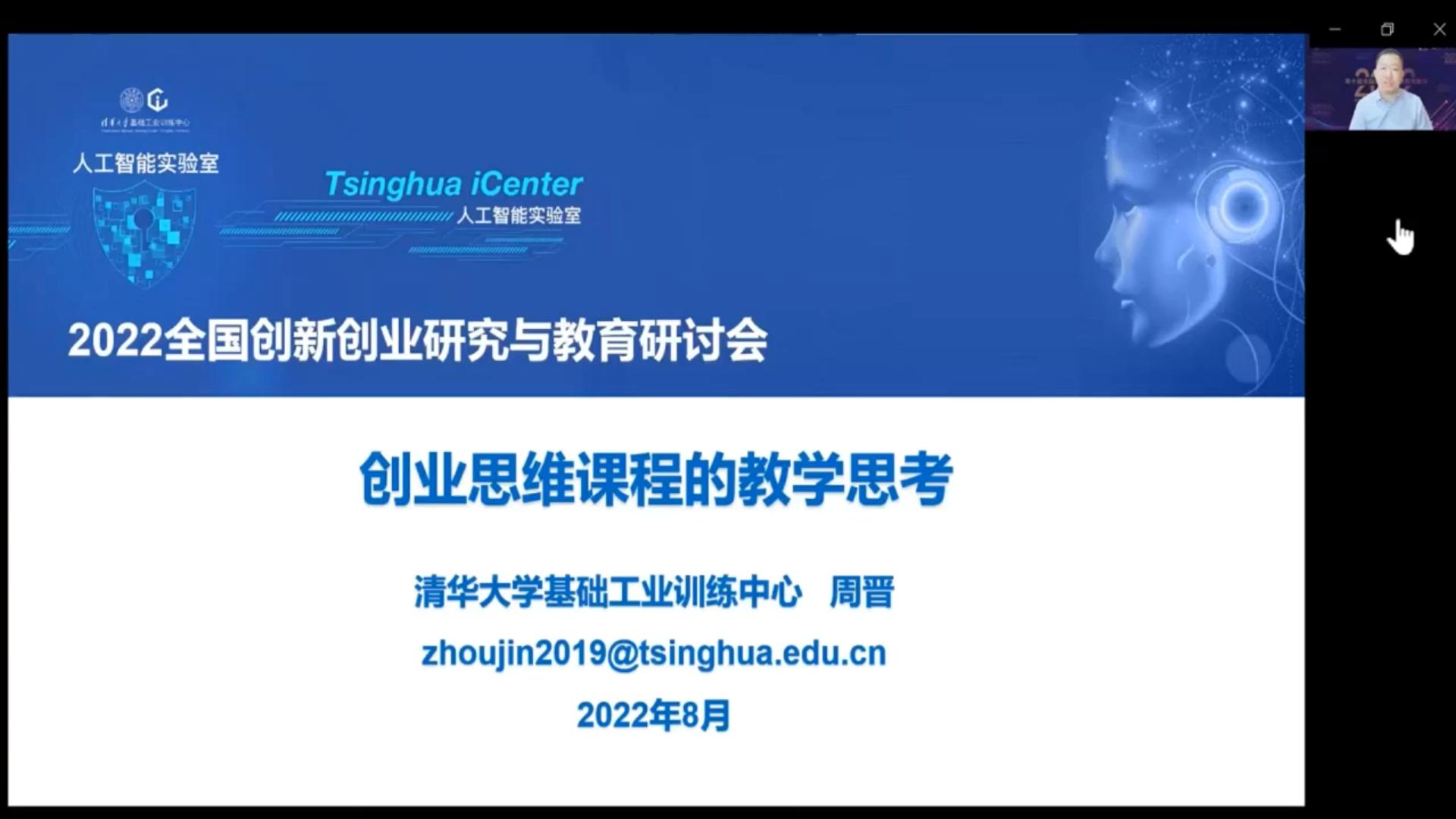 第一位分享的是来自清华大学的周晋老师,主要围绕“创业思维课程的教学思考”展开。首先,周晋老师介绍了清华大学AI创新创业能力提升课程的建设背景和多层次的师资队伍。接着,他分享了该课程的教学目标和详细的课程安排,课程通过等级制成绩进行考核。最后,他指出创业思维课程的学习,能让学生建立正确的创业观,进而找到人生的奋斗目标,掌握重要的创业能力和创业思维。