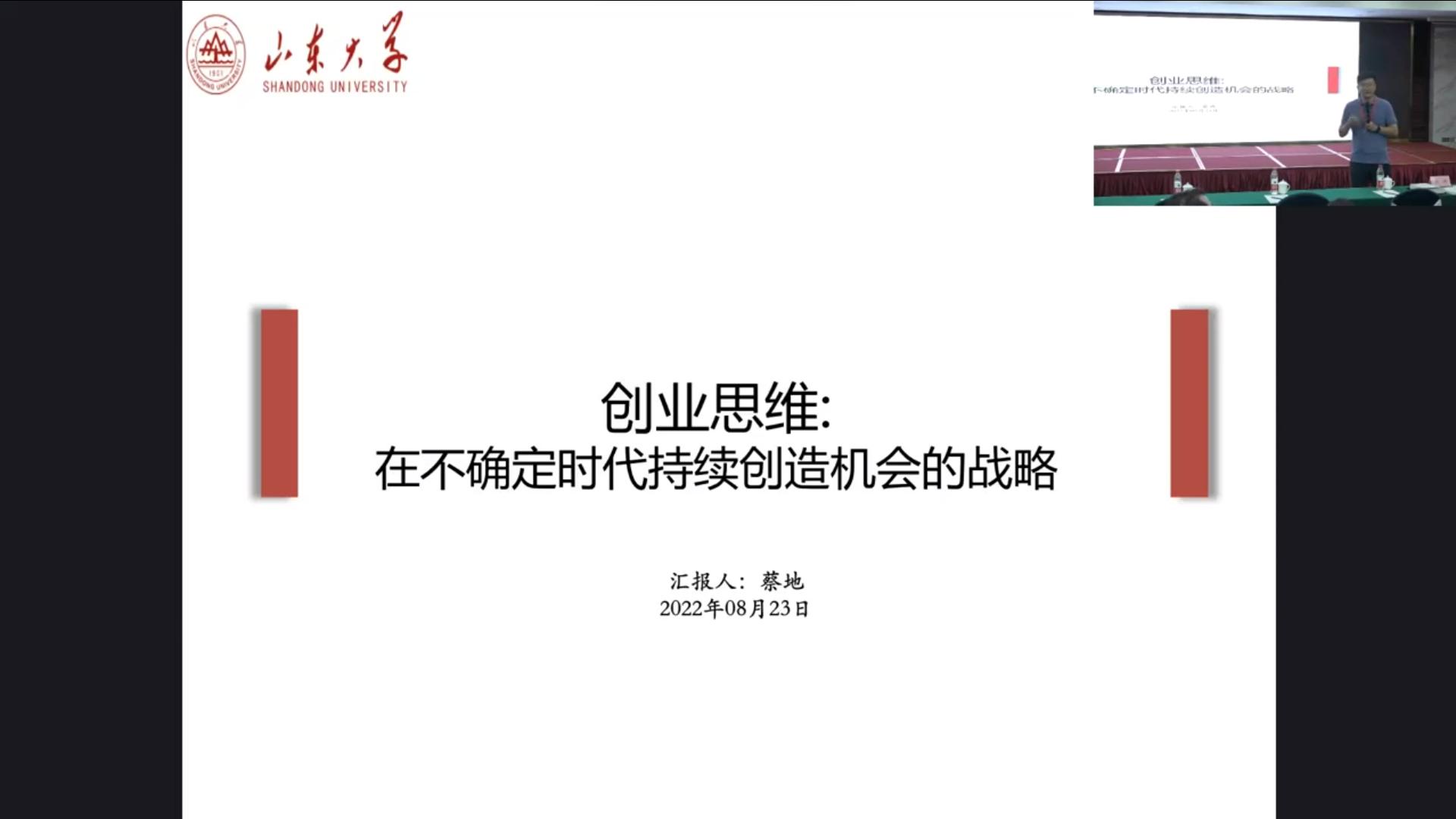 第六位分享的是来自山东大学的蔡地教授,他分享了自己翻译的由丽塔·冈瑟·麦格拉思和伊恩·麦克尤恩合著的《创业思维:在不确定四代持续创造机会的战略》一书。他指出,创业的本质是从不确定性中创造机会,因此我们需要建立把不确定性当成盟友而非敌人的创业思维。面对不确定性,习惯性创业者往往不回避,反而会想方设法加以利用,将别人认为复杂的地方化繁为简,积极承担可预测的风险并从中学习,往往先去寻找大致正确的解决方案,而不是追求一个完美无暇、耗时漫长的方案。随后,蔡地教授介绍了该书的主要内容,包括建立创业框架、设立机会清单、聚焦最佳机会和评估项目进程等。整本书具有逐步进阶、通俗易懂和行动导向的特点。最后,蔡地教授分享了他学习这本书的心得:以开放的心态接纳不确定性,用积极的行动应对不确定性,用主动的进化驾驭不确定性。
