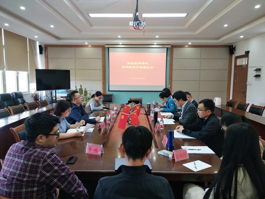 10月24日下午,科研处金通处长、邵燕波副处长、俞晓老师一行莅临我院开展国家课题申报工作座谈会,王建明院长、戴维奇副院长、张雷副院长以及7位学院教师参加了本次座谈会。