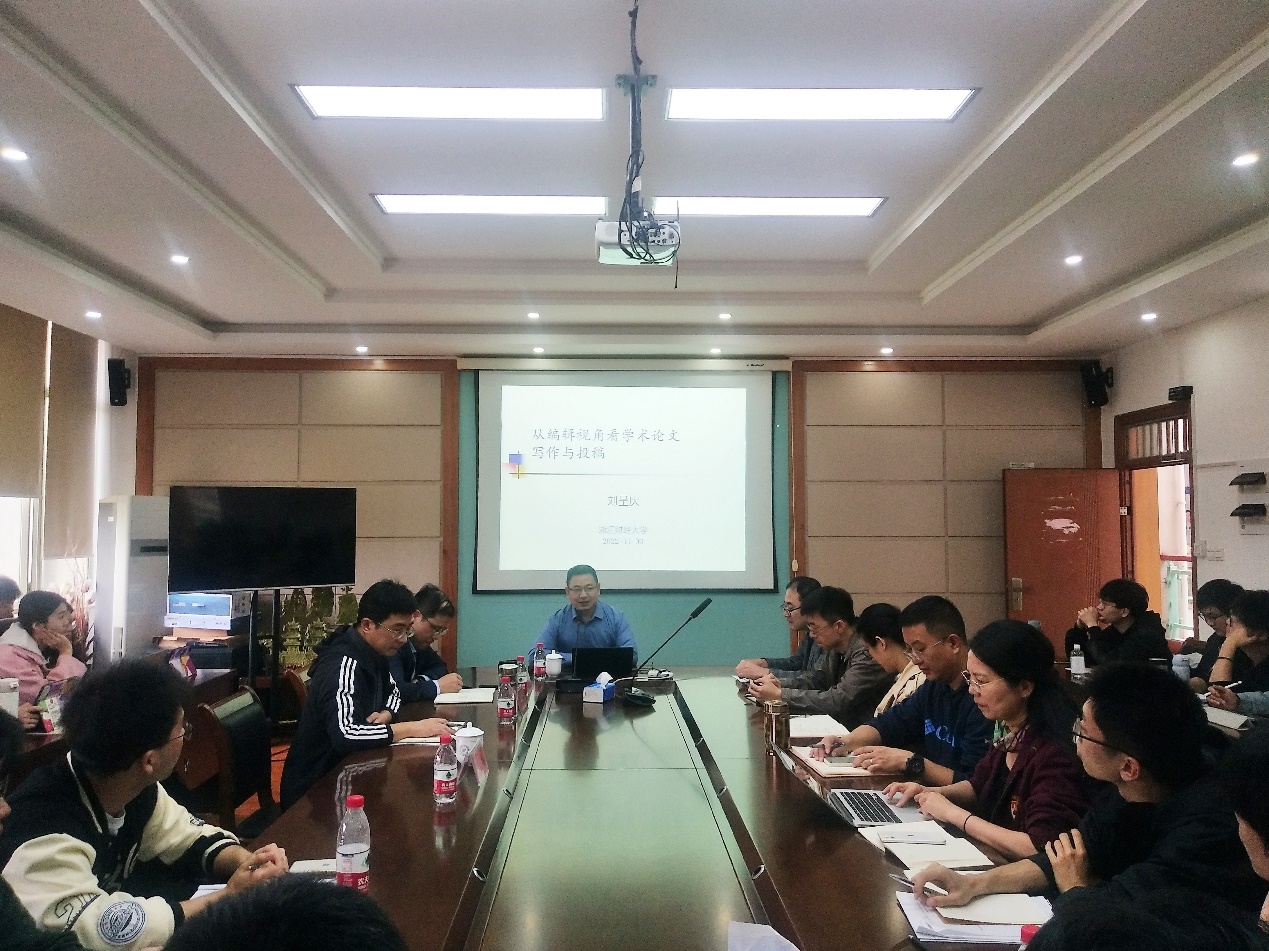 2022年11月3日下午,我院邀请《中国人口·资源与环境》编辑部常务副主任、山东师范大学碳中和研究院院长刘呈庆教授为师生作题为《从编辑视角看学术论文写作与投稿》的学术报告。本次报告会在工商伟德国际1946楼410会议室举行,吸引了我校师生60余人。报告由院长王建明教授主持,副院长戴维奇教授参会。