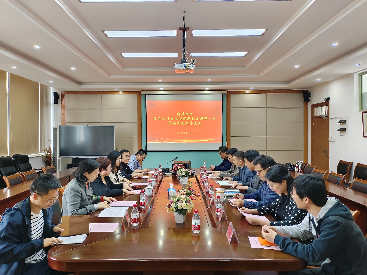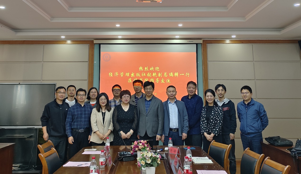 5月8日下午经济管理出版社张艳副总编辑、张莉琼编辑一行来我院指导交流,学院院长王建明、副院长张雷、党委委员郭军灵以及学院教师代表9人参加交流。