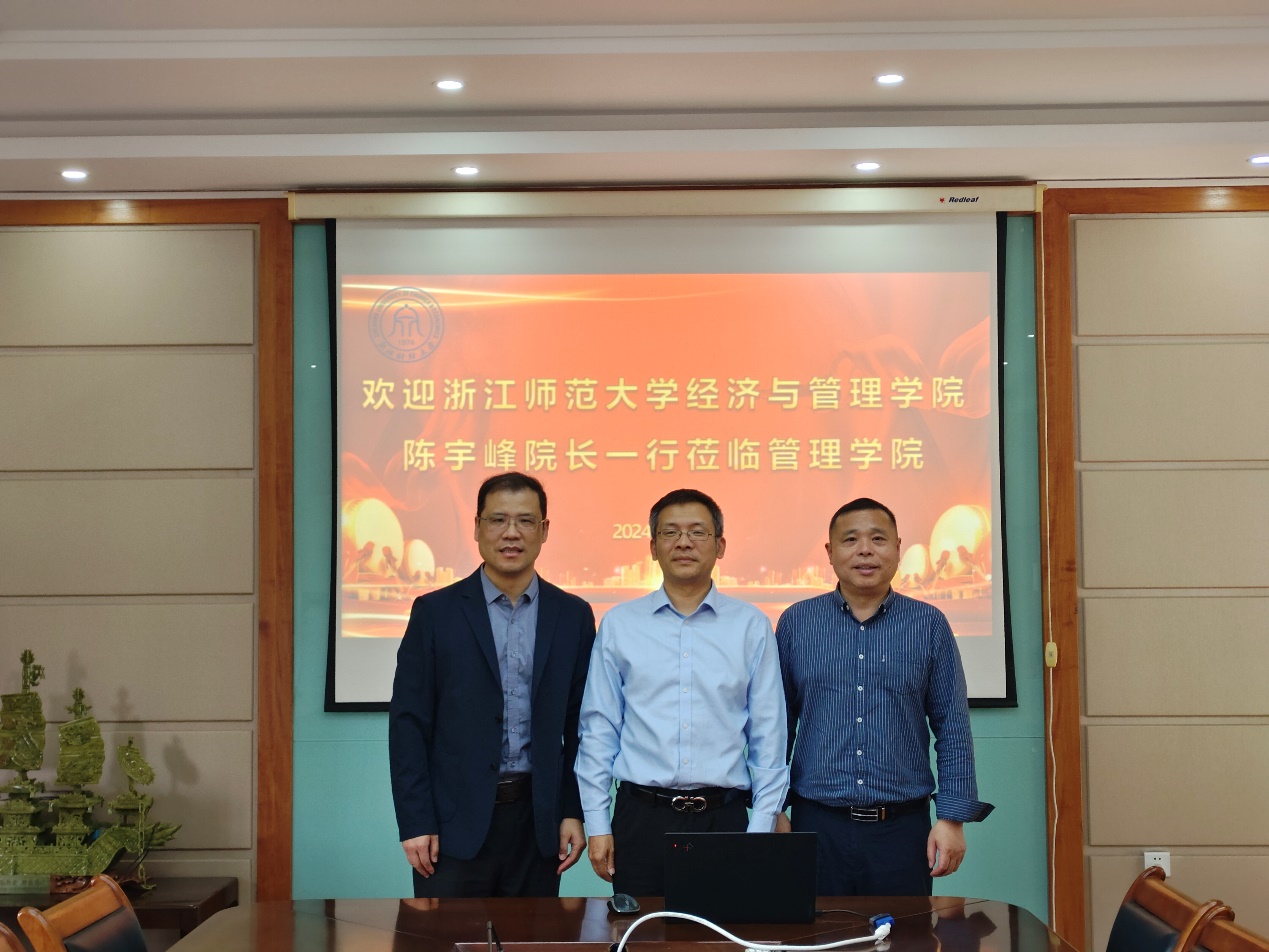 2024年4月1日,浙江师范大学经济与伟德国际1946、中非国际商学院院长陈宇峰到访伟德国际1946,学院党委书记朱力明、副院长戴维奇接待了陈宇峰一行。