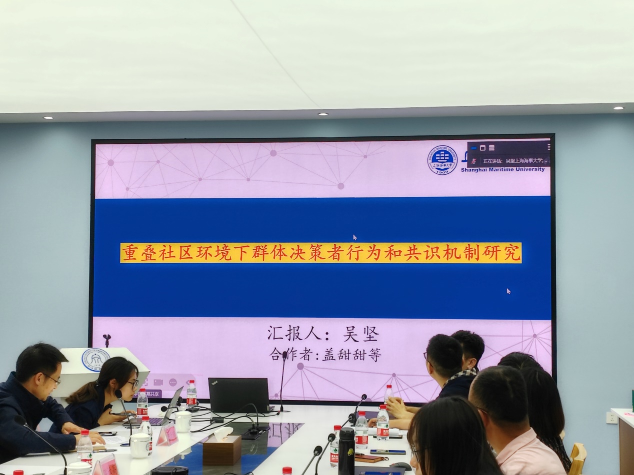 上海海事大学吴坚教授以“重叠社区环境下群体决策者行为和共识机制研究”为题分享其近期研究成果。首先,吴教授指出社交媒体和网络平台的发展促进了决策者间紧密的互动,形成了基于社会信任的复杂社交网络关系。他特别聚焦于重叠社区现象,认为决策者在其中扮演着连接不同社区的关键角色,有助于促进意见的交流。随后,吴教授还深入分析了社区的动态妥协行为,指出社区在多轮互动中对意见调整的接受度会逐渐降低,这一过程具有动态性。为了更准确地描述社区在决策过程中的妥协意愿变化,吴教授提出了一种基于前景理论的动态妥协限度函数。接着,吴教授提出了一种双向反馈机制,该机制考虑了重叠社区的结构差异,并制定了相应的反馈规则和共识模型。这项研究不仅为社交网络中的群体决策提供了新的洞见,也为提高决策效率和共识达成提供了有效策略。最后,吴教授指出未来的研究应进一步探索重叠社区结构在社区交互和信任传播中的作用。