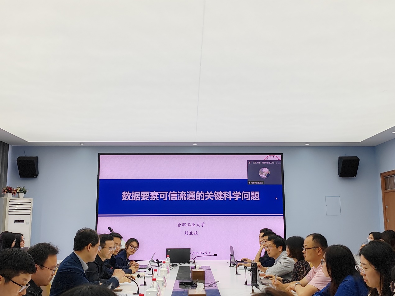 合肥工业大学刘业政教授以“数据要素可信流通的关键科学问题”为题分享其相关研究。首先,刘教授从数据要素的特点来讲述研究的背景,指出“可信”是数据要素流通使用的前提条件和核心要素。基于“什么样的市场是可信的市场”这个问题,刘教授提出了一种由主体可信(Participant)、数据可信(Data)、合约可信(Contract)、算法可信(Algorithm)构成的PDCA可信体系。随后,刘教授指出了PDCA可信生态体系研究中需要解决的三方面基本理论问题:可信机制与评估、可信技术与方法、可信保障与实现。最后,刘教授指出系统把握数据要素融入生产、分配和流通等环节的理论逻辑,全面探索数据要素价值转化的基本原理,深刻解构数据要素流通中安全保护、有效利用、有序流通的科学机理,对建立我国数据要素及其流通理论体系,构建数据要素基础制度体系,建设数据要素市场流通机制,充分释放数据要素的价值,加快我国数字经济高质量发展具有重要的理论和实践意义。
