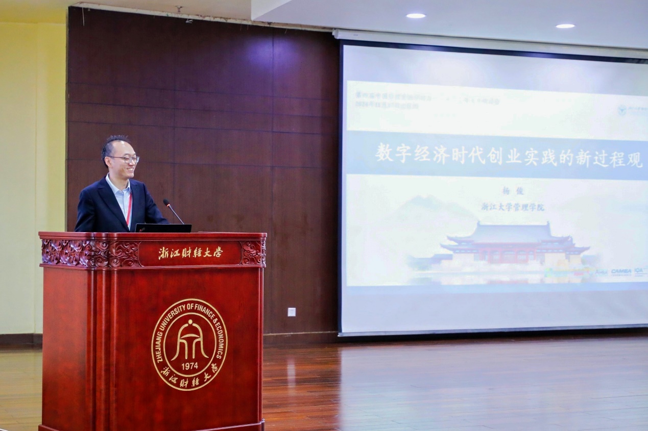 浙江大学伟德国际1946杨俊教授作题为《数字经济时代创业实践的新过程观》的主题报告。杨俊教授阐述了创业实践发生的变化,并对应提出赋予新内涵、价值创造载体变化以及挑战经典创业过程理论三点学术判断。接下来,以谷歌和腾讯公司为例讲述新兴的创业实践的两件事是创造什么价值、怎么创造价值,并提出创业研究的新过程观的“隐性行为—显性行为”组合和整合性理论框架。杨俊教授指出数字经济时代的创业实践是被管理的行为过程,这与我国高质量发展等战略关联密切。