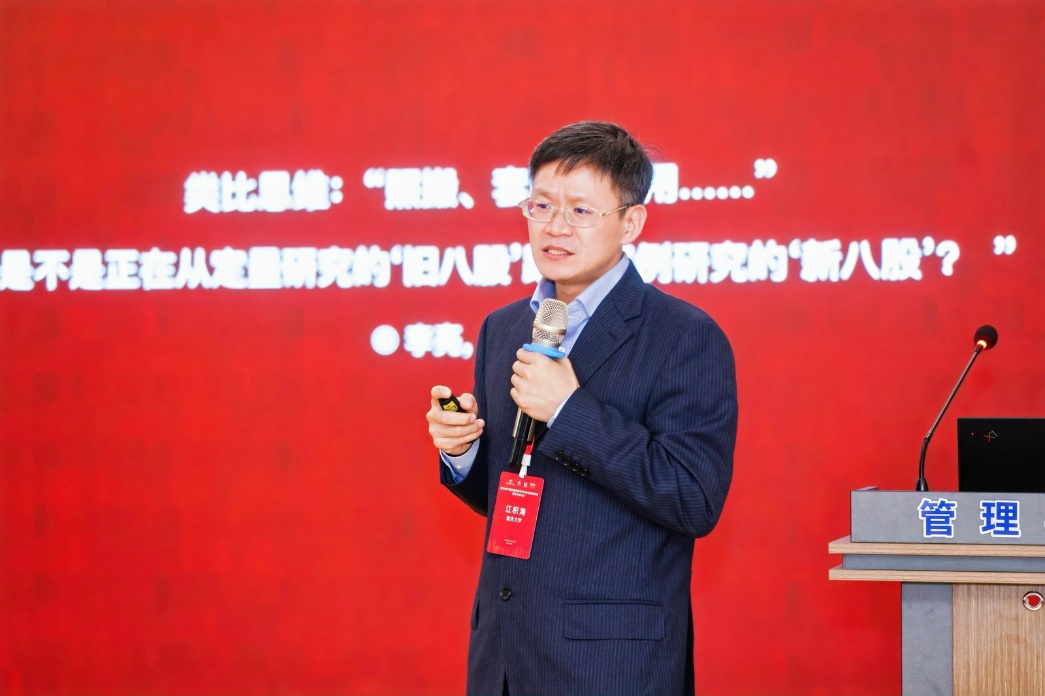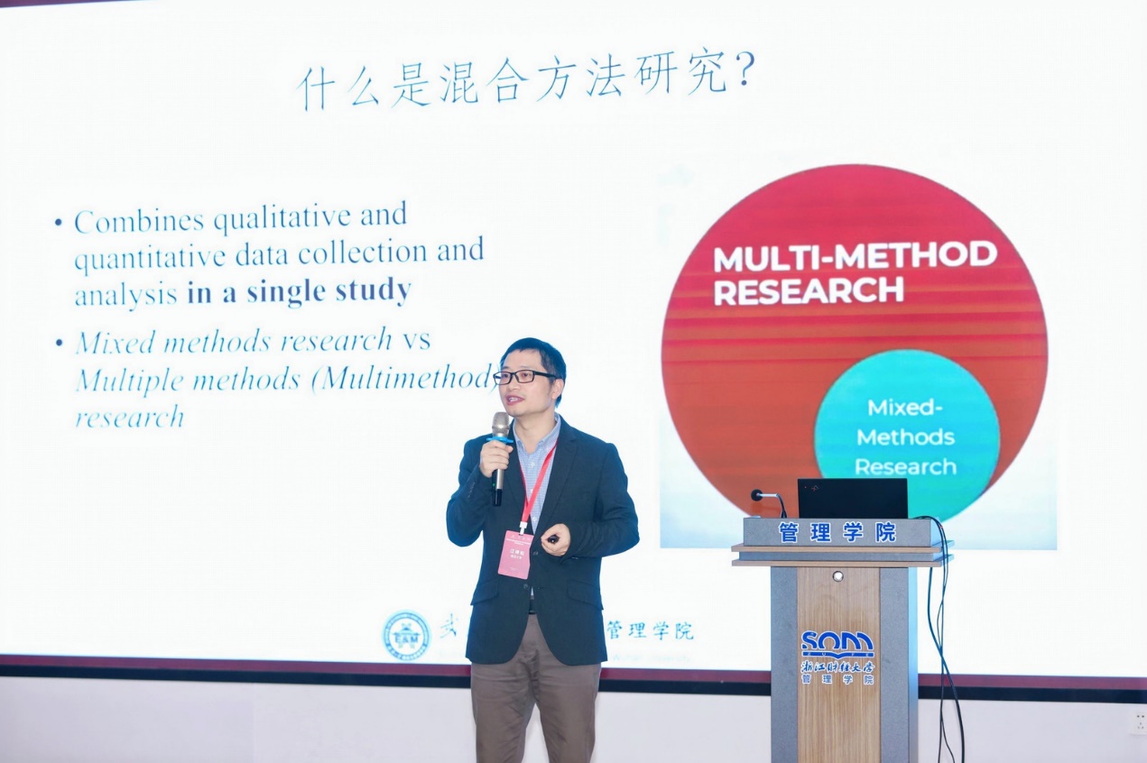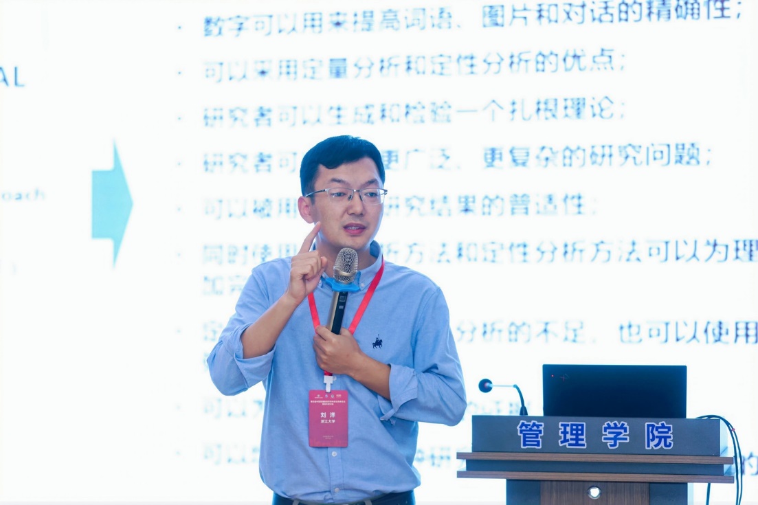 第三位演讲嘉宾是武汉大学的江诗松教授,他带来的报告主题为“混合定性和定量研究方法”,刘洋教授、崔淼教授担任点评人。