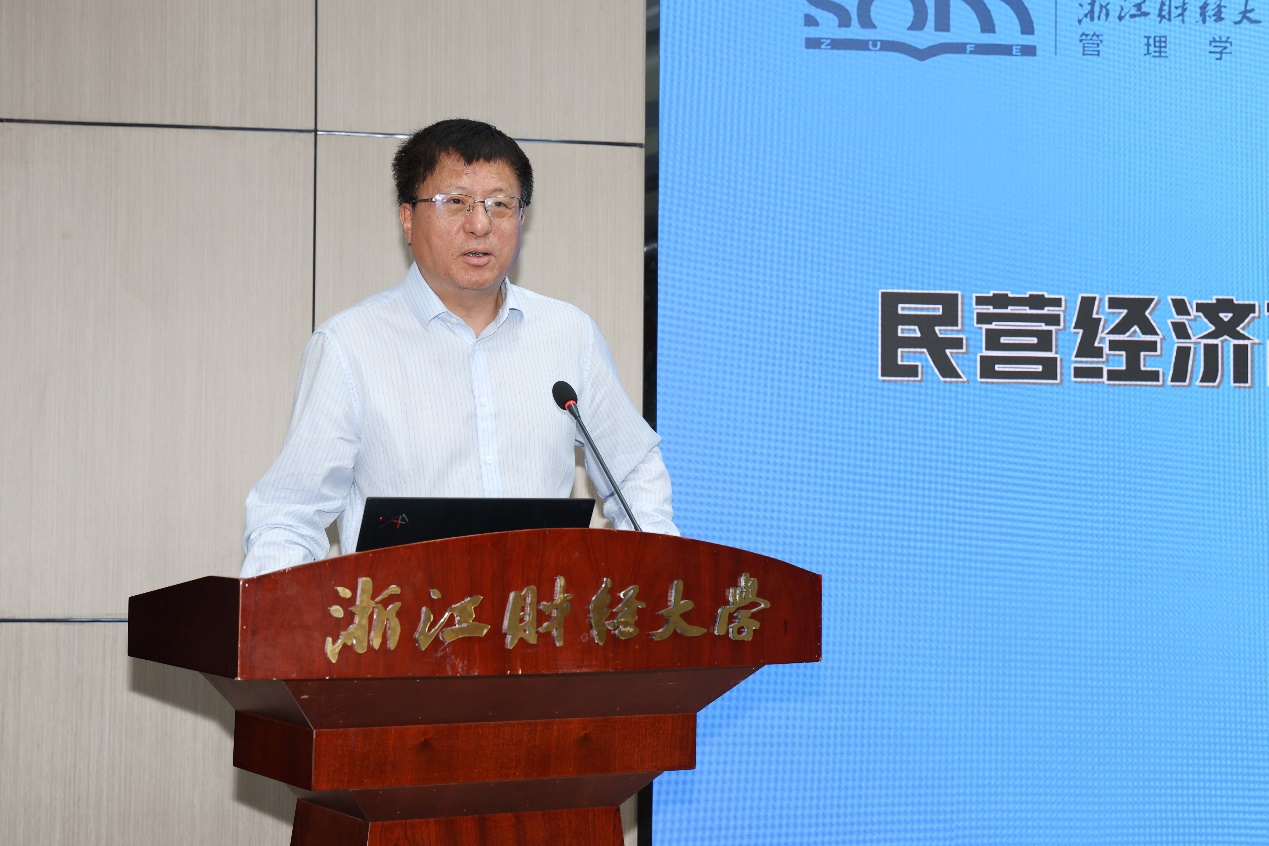 董进才在致辞中指出,民营经济始终蕴藏着敢为天下先的创新血脉,“杭州六小龙”的崛起也让我们看到了民营企业在新一轮科技革命和竞争中的使命担当。学校作为省高水平建设高校,始终致力于推进“新财经战略”,精准推动经管学科与数字科技产业的深度融合,组建数字创新管理团队,深耕数字经济、民营经济研究领域。本次论坛以“数智创新与管理驱动民营经济高质量发展”为主题,力求为民营经济高质量发展提供理论框架、政策建议、场景方案等全面支撑,既是响应党中央的号召,也是高校和民营企业高质量发展的具体行动。