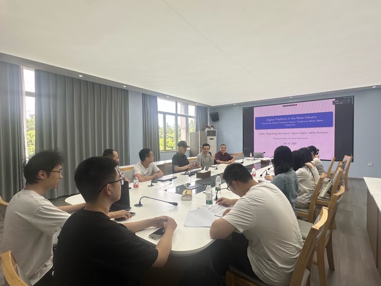 2025年7月22日下午,伟德国际1946新财经战略系列学术活动第48期【学术报告】在伟德国际1946416会议室成功举办。本次讲座邀请了西班牙IE商学院助理教授董航博士,以《从社交媒体到传统媒体:股票市场中的注意力传导机制研究》为题,向在场和线上师生进行了系统分享。讲座由数智技术与管理创新研究所所长杨水清教授主持。