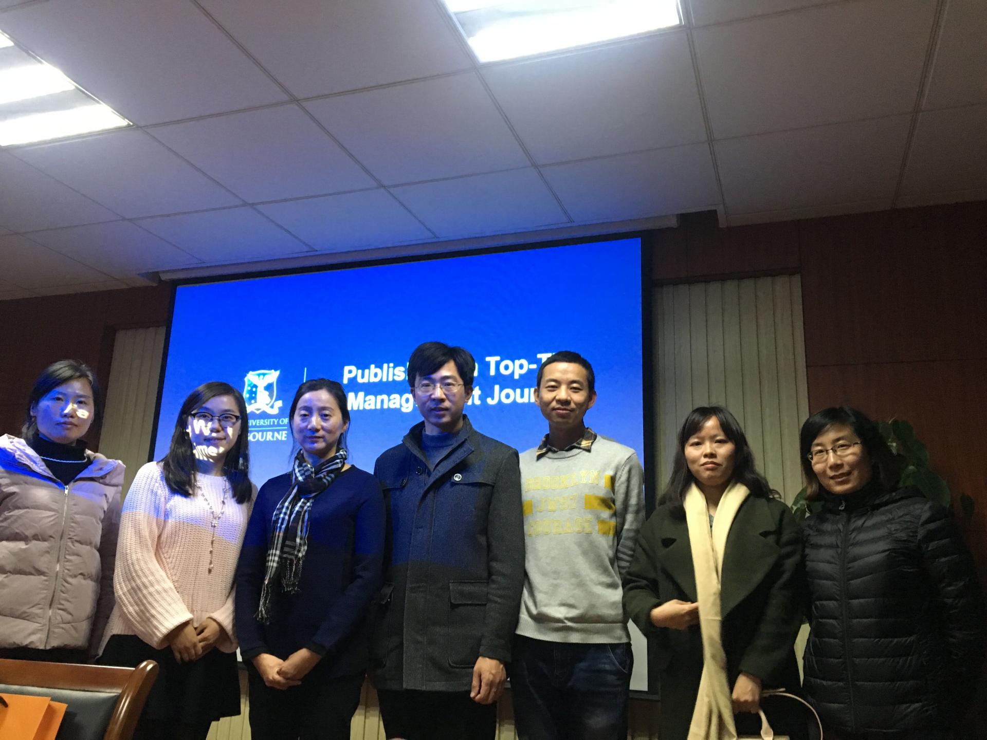 Jane Lu教授身为APJM国际期刊主编,首先为在场师生带来了以“How to publish in top-tier management journals?”为主题的演讲,与在场的师生分享了在高水平期刊发表论文的方法和经验,特别结合其自身的论文撰写、投稿发表等方面的研究心得跟与会者进行了分享。紧接着,Jane Lu教授以其近期代表作《Corporate Philanthropy and Corporate Financial Performance: An Institutional Comparison between China and the United State》为例,深入剖析了在中美不同的制度情境下,企业慈善捐赠对其绩效的影响,引起了大家的深思。并结合此文章来为大家呈现论文撰写方法,指出了典型的写作误区并提出了指导性建议,精彩的演讲激起了现场师生的热烈掌声。接下来的学术交流讨论环节中在场的师生也纷纷就自己感兴趣的研究问题与Jane Lu教授进行交流,Jane Lu教授一一对问题进行了详尽的解答,本次会议在大家的热情掌声中完美结束。