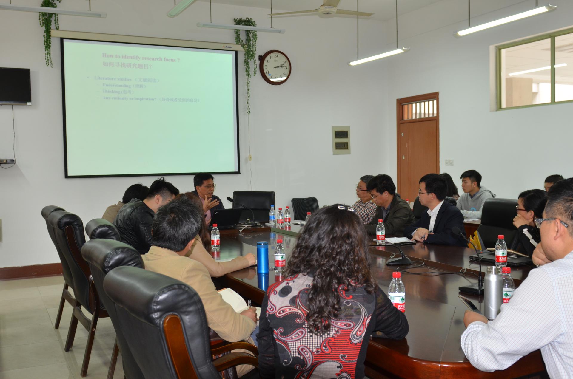申立银教授首先就论文选题和文献阅读方面做出经验性的汇报,指出完成枯燥的文献阅读工作是每个硕博生需要达成的基本功底。并从标题、摘要、引言、研究方法和结论五个论文写作的主要结构进行了深入交流分析和详细论述。申立银教授总结自身在国际各类英文杂志包括顶级工程管理领域的多种国际杂志上发表近165篇英文论文和连续两年(2014、2015)被国际著名科研出版社Elsevier评为建设管理领域中国高被引学者等经历切实分享了自己总结的国际期刊论文的写作的五大要点。
