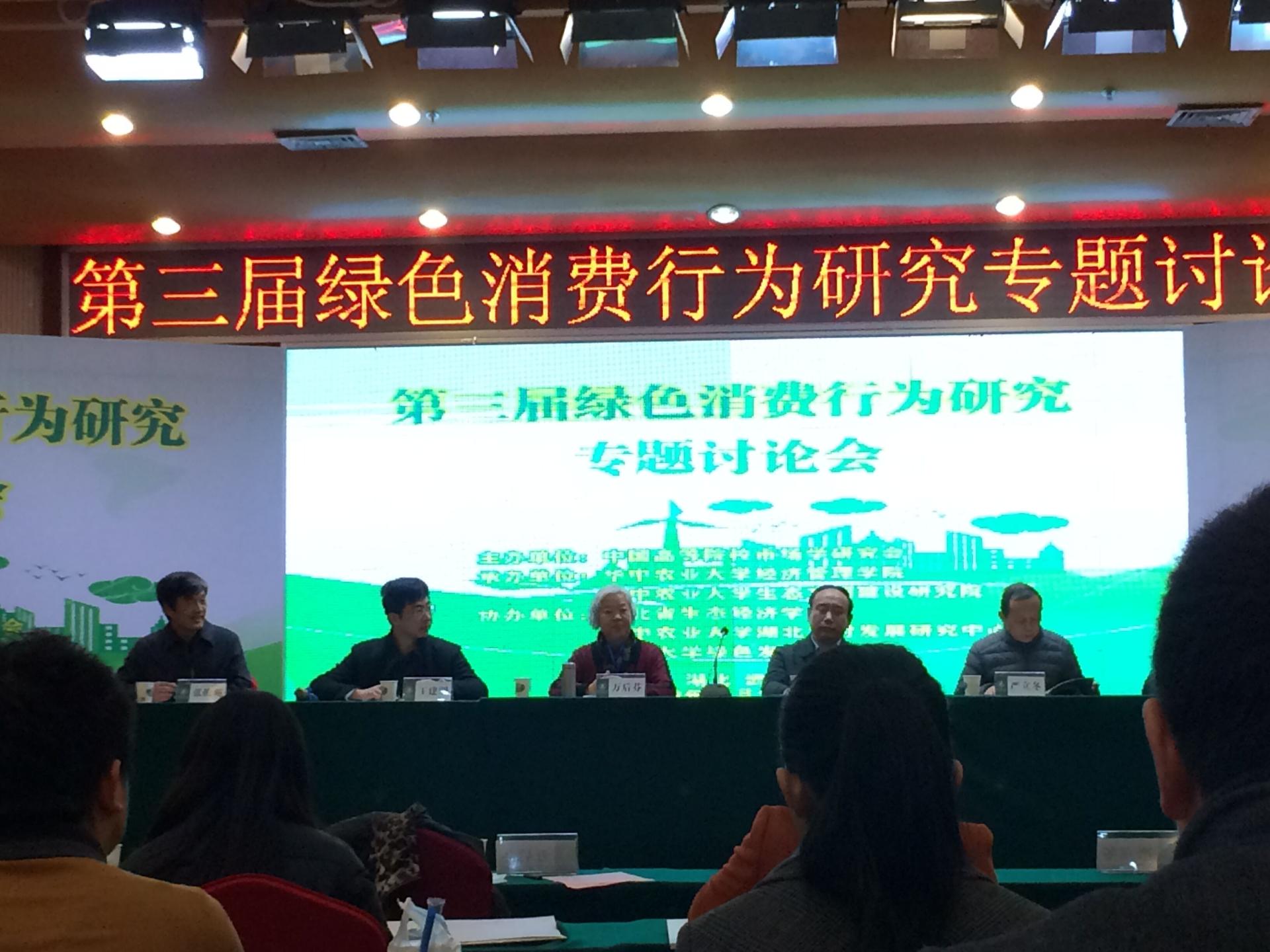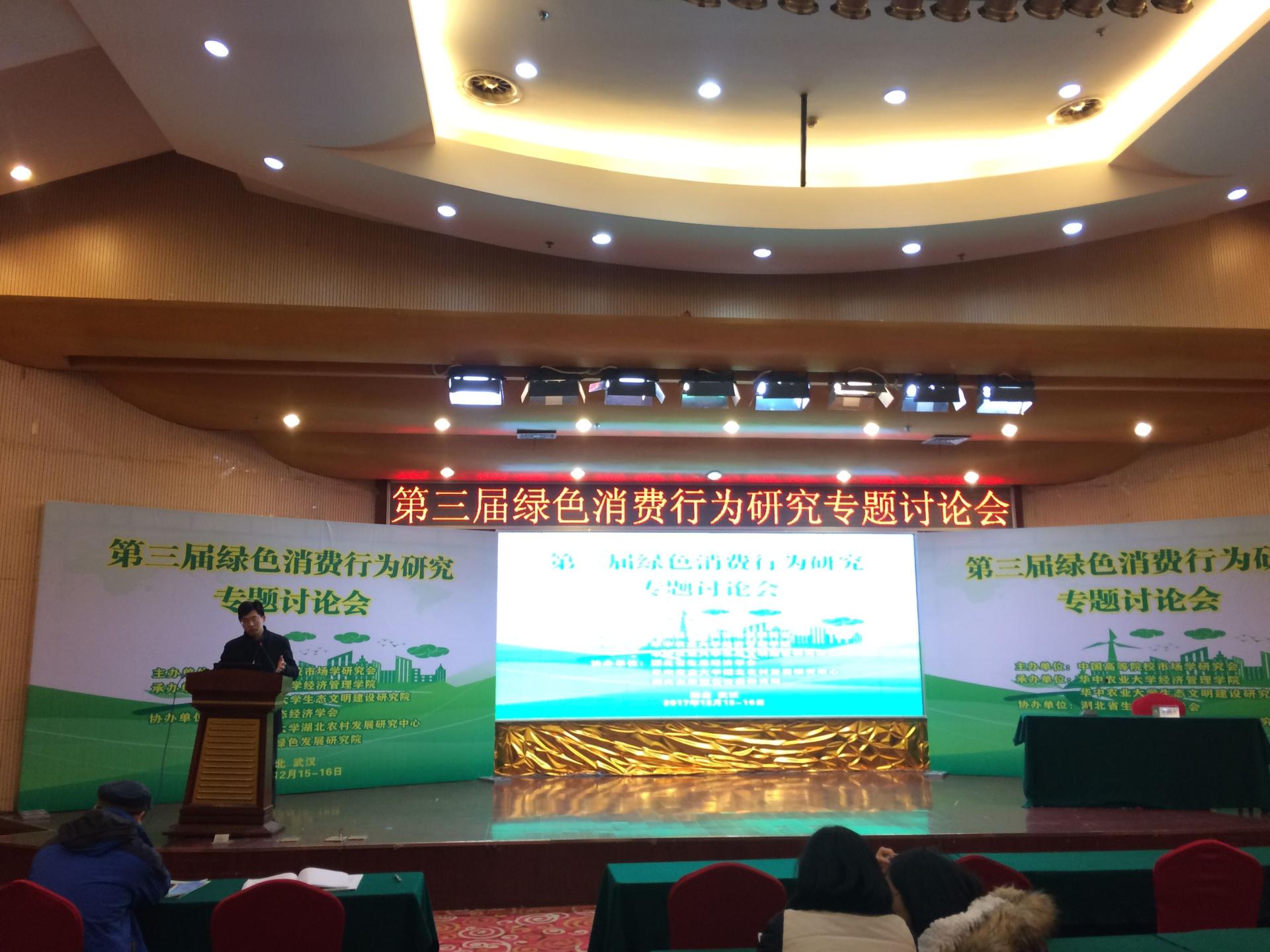 2017年12月16日,“第三届绿色消费行为研究专题研讨会”在武汉成功举行。本次研讨会由中国高等院校市场学研究会主办,华中农业大学经济伟德国际1946、华中农业大学生态文明建设研究院承办。我院王建明教授、高键讲师、《财经论丛》刘国珍老师以及市场营销管理方向的3位研究生王成、鲍婧、彭伟参加了会议。