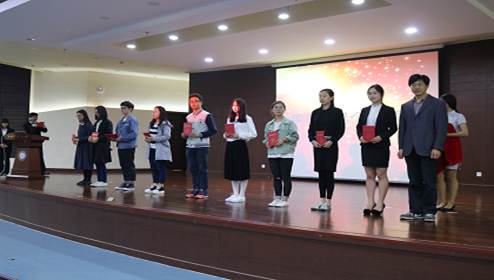 在第二部分的学风先进个人表彰中,程超、何诗楠、许欣祎、田佳、王晓晨、陈沐豪等同学以其刻苦的努力、优异的表现获得了学风先进个人称号,副院长王建明老师为这些优秀的学生颁上了荣誉证书。其中,15工商2班的田佳同学作为学风先进个人代表,就如何学好专业课、如何提高英语能力等问题分享了自己的学习经验。