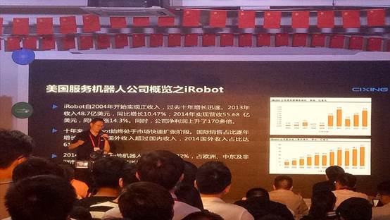 行业专场的主题演讲是“智能服务机器人的发展现状及中国企业机会”,演讲人是慈星机器人董事长李立军先生,他首先介绍了服务机器人是如今风口的原因,主要是劳动力成本的上升、经济水平的提高科技的发展及老龄化问题等四个方面。随后又系统介绍了服务机器人的发展,尤其一些发达国家,如美国、日本、欧洲的一些国家都大力发展服务机器人且成果斐然,中国虽然起步晚,与他们这些国家有些差距,但是服务机器人和人工智能方面更多是算法,这方面我们华人非常有智慧,包括在硅谷,很多大的部门都是中国人在领导,而且这些人很多已经回国创业。前几年他们创建了一个联盟,叫做“智能服务机器人的创业者联盟(RFC)”,把市面上大家能够看到的服务机器人的创始人都集中在这个社群中,把文化与科技进行融合,主要是做儿童教育,看好两个重点方向:一是教育和儿童陪护;二是针对老年人助残助老。他的总体想法就是:人工智能、物联网、机器人,三者融合,让机器人更加走向我们的生活。