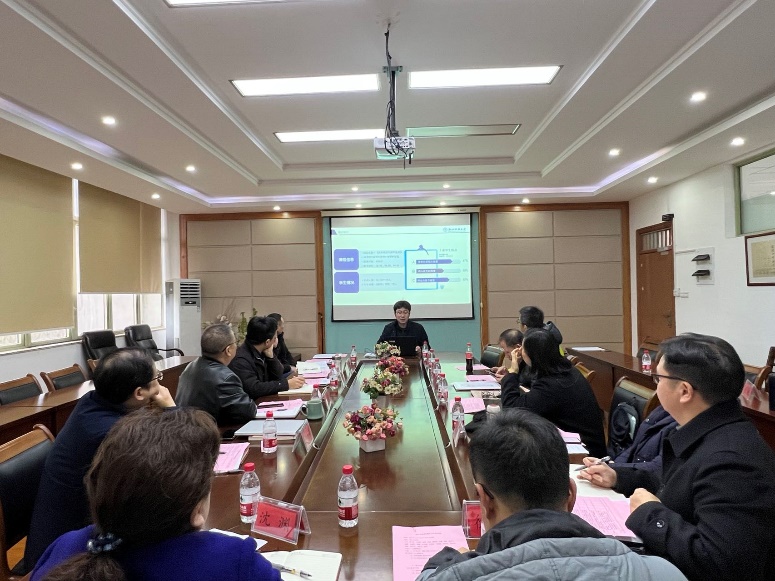 学院领导班子集体出席,企管、市营、人力、供应链4位系主任、数智创新班负责人沈渊、中美市营合作项目负责人王建国、院督导组组长郭军灵、相关行政人员参加。会议由王建明院长主持。