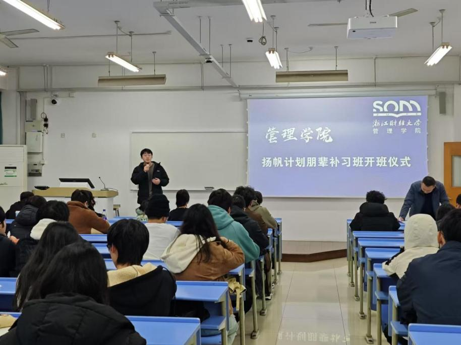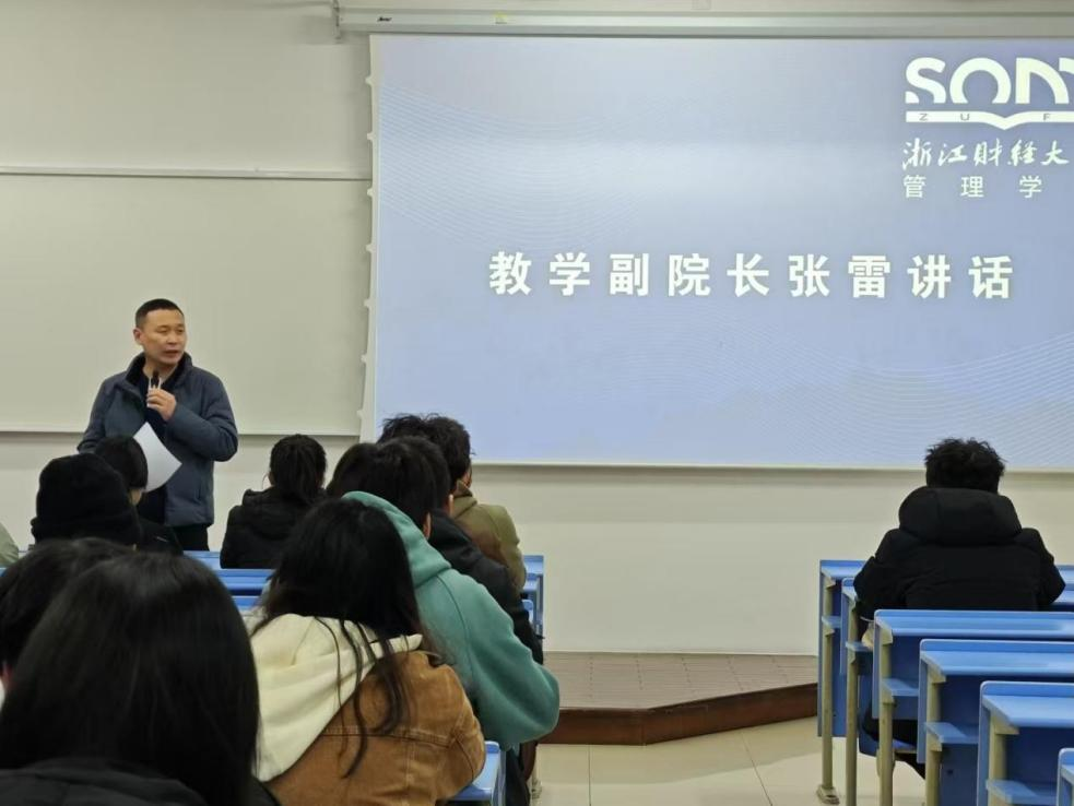 教学副院长张雷指出,在学校大力推进“三风”建设的背景下,学院特推出“扬帆计划”朋辈补习班活动,帮助同学们增加对知识的理解,顺利通过考试以获得学分。他表示,学分和绩点对于同学们是非常重要的,关乎同学们是否能够正常获取学位证书,更关系到同学们在本科期间的学习质量及对自身的长远规划。他告诫同学们要借此机会提升自身,共同探索学习的乐趣,不要为大学生涯留下遗憾。他强调,学院会长期关注和支持相关辅导工作,希望同学们全程参与,也希望新聘任的学生助教能够充分发挥自己的专业优势,为补习的同学提供充实的课堂内容。