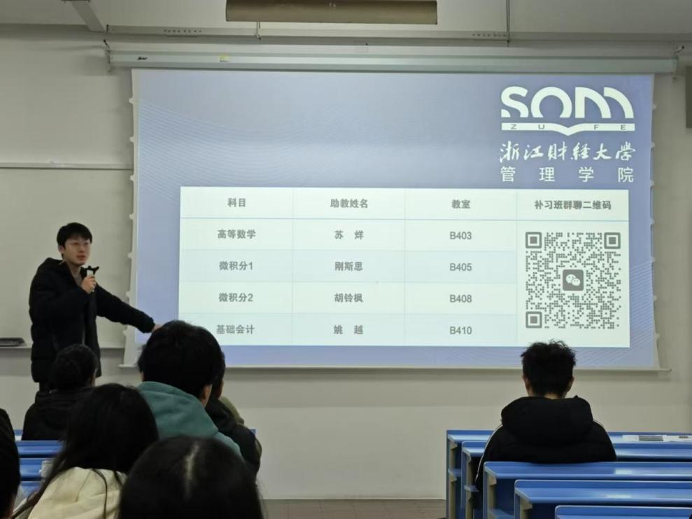 马硕向全体补习班成员提出上课的纪律要求。他指出,助教老师和同学作为同辈能够更好的沟通和交流,能通过互动更好的解决问题,进而提高成绩。希望同学们全程参与,相信助教老师的实力,也相信自己能够成功拿到学分,共同努力推动学院整体的学风氛围愈加浓厚。