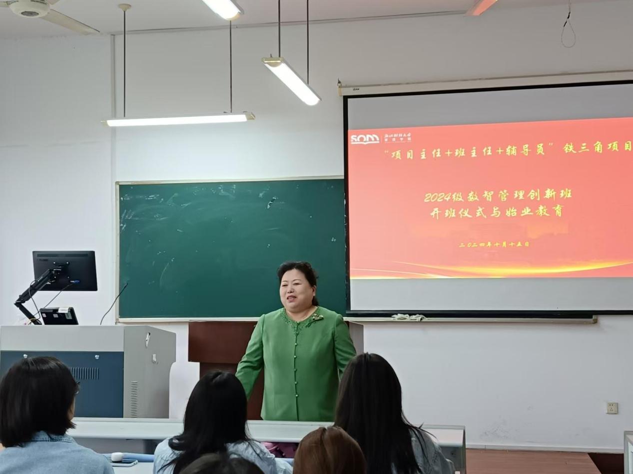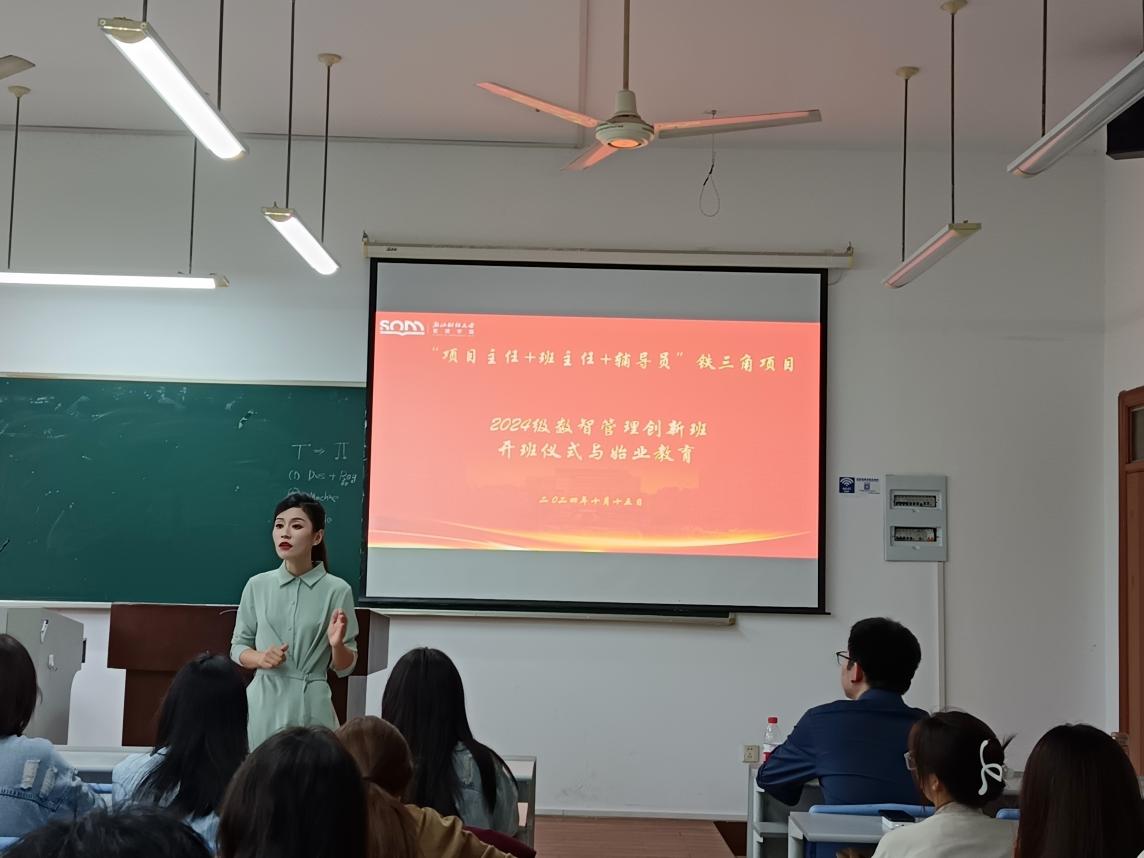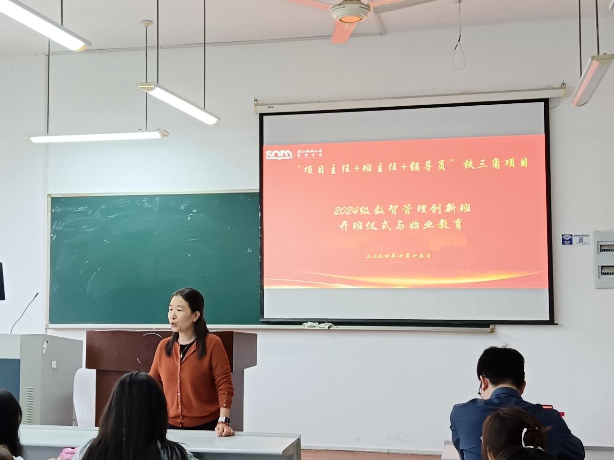 24级数智管理创新班于10月15日下午召开开班仪式与始业教育大会。伟德国际1946数智管理“铁三角”项目负责人张雷,党委副书记陈小芳,班主任吴丽民,沈渊,林与川,带班辅导员周依凡以及24级数智管理全体学生共同参与了这次活动,本次活动由沈渊教授主持。